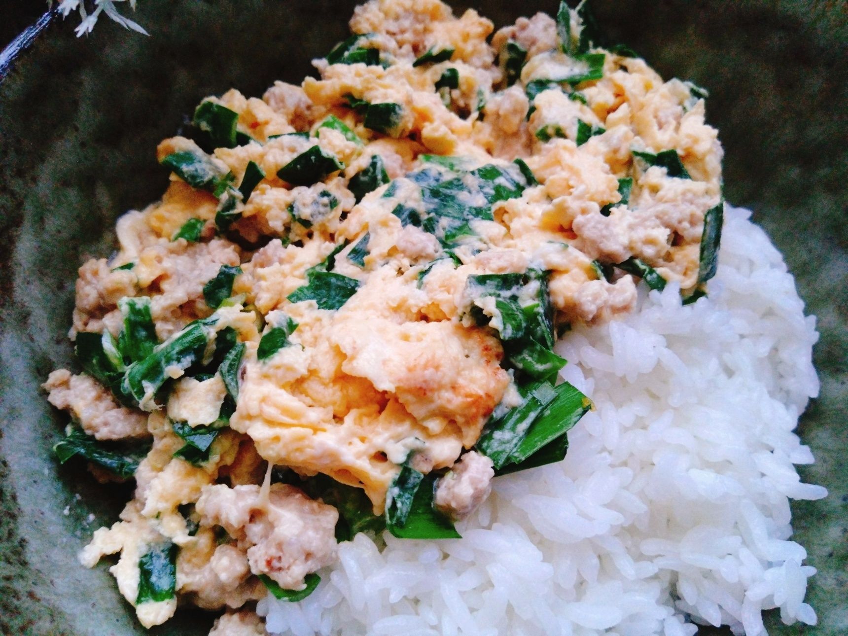 ・卵は割りほぐしてニラを加えて混ぜる