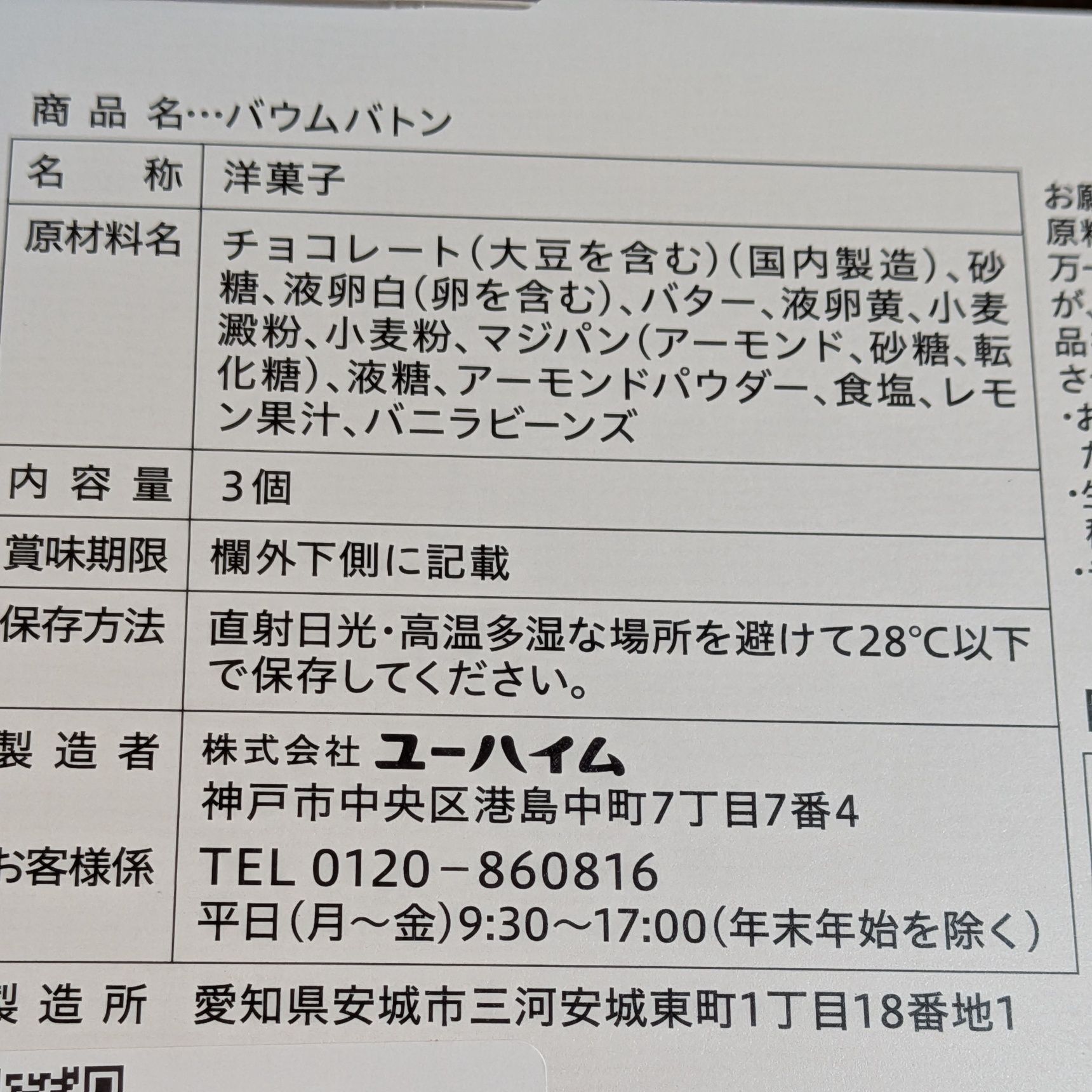 他にもバウムクーヘンを買ったので今回は3本入りに。