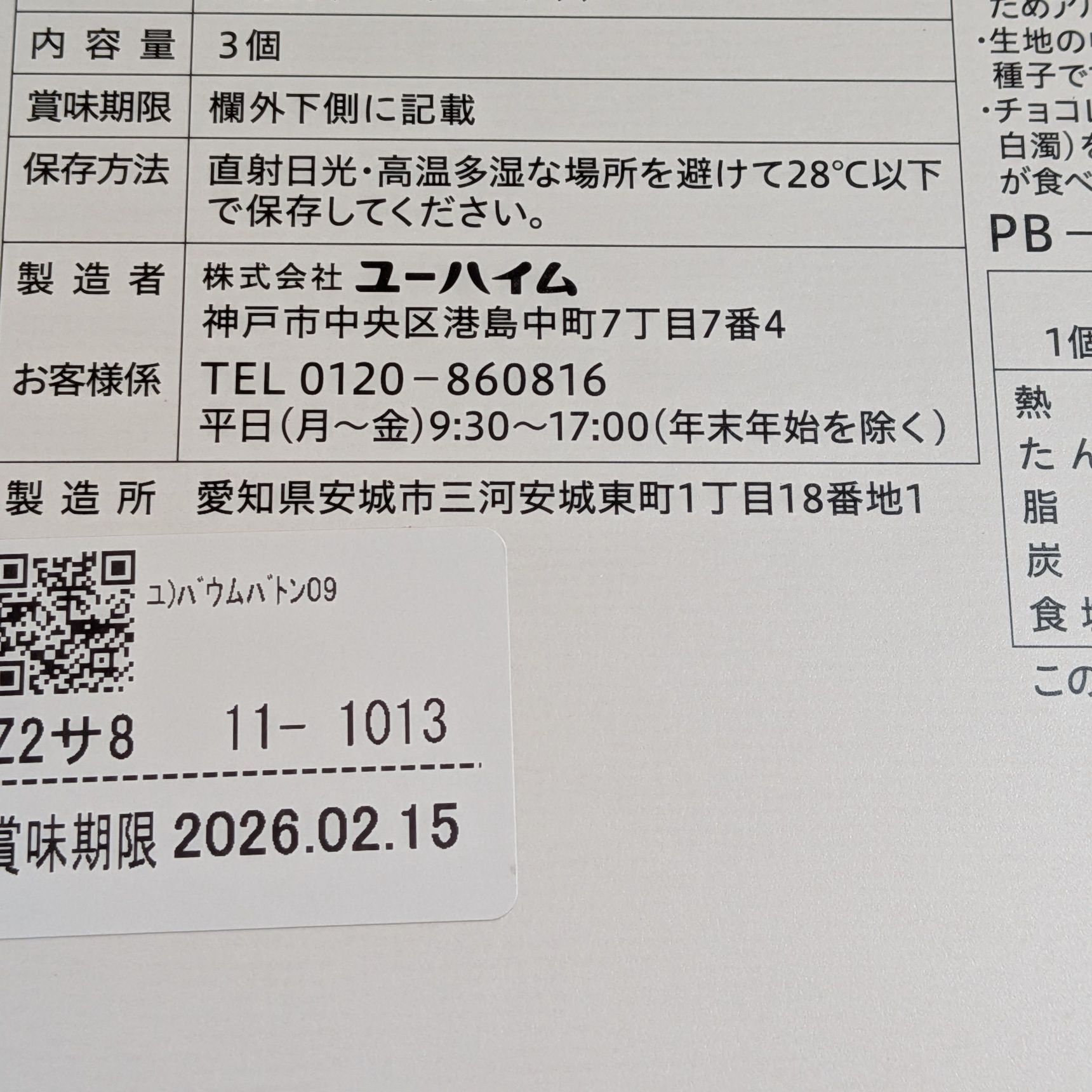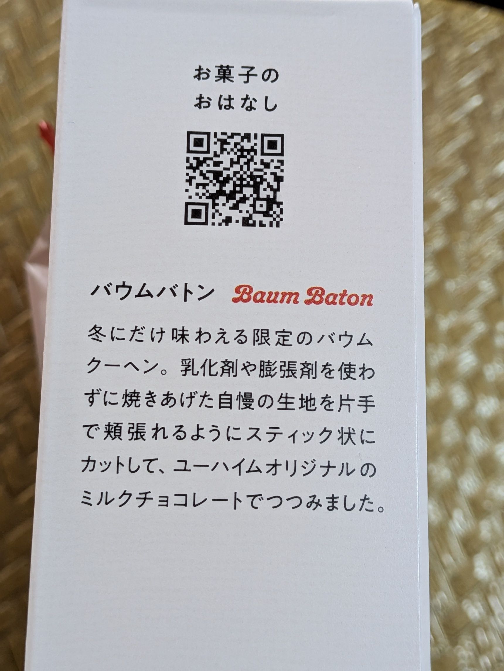 中には可愛らしい紙が1枚入っていました。QRコードにユーハイムさんの企業理念が載っていましたよ。