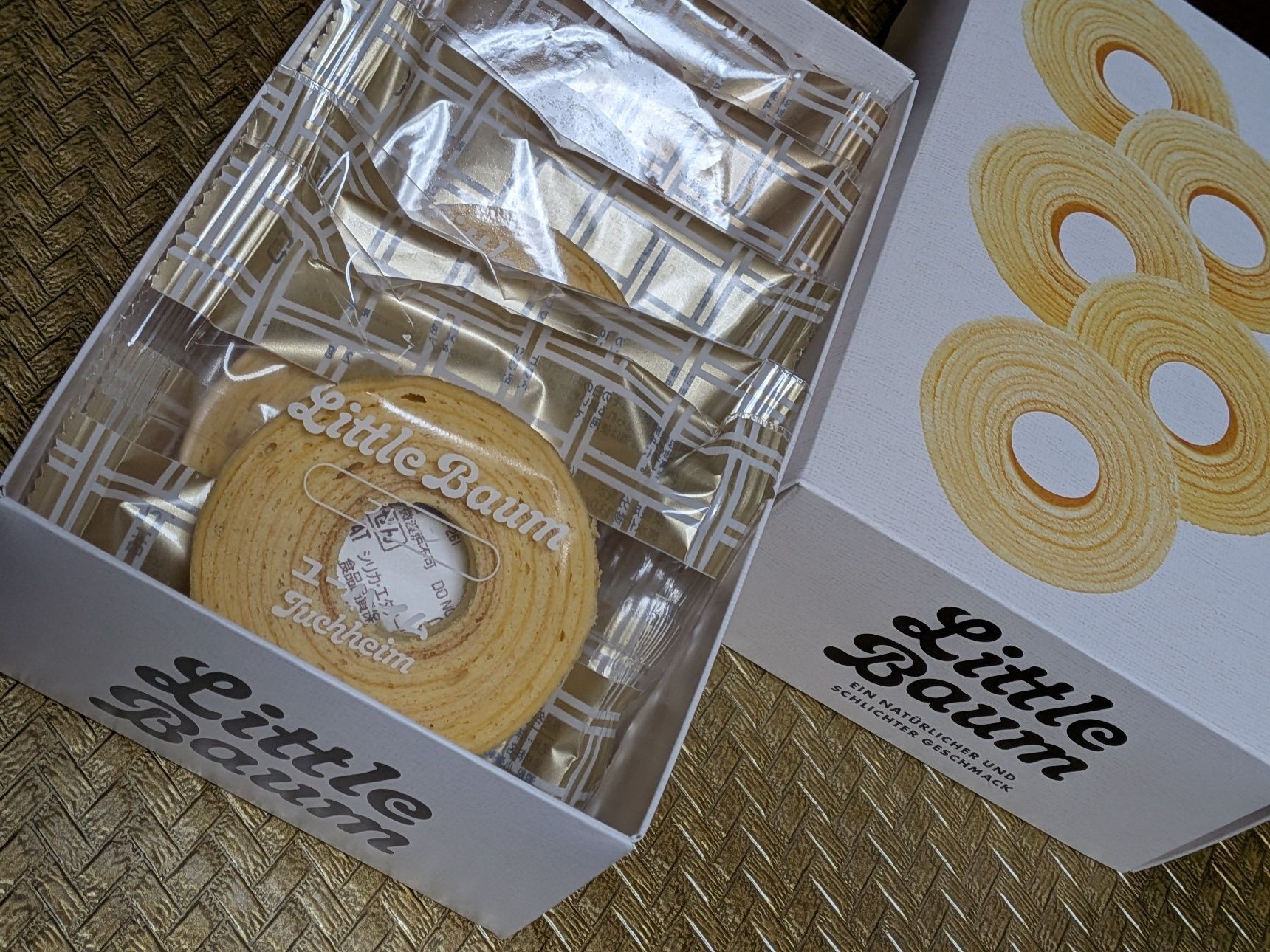 ちなみに今回はリトルバウム(5個入り)も買いました。プレーン2つ、チョコレート2つ、キャラメルナッツ1つ入っていました。