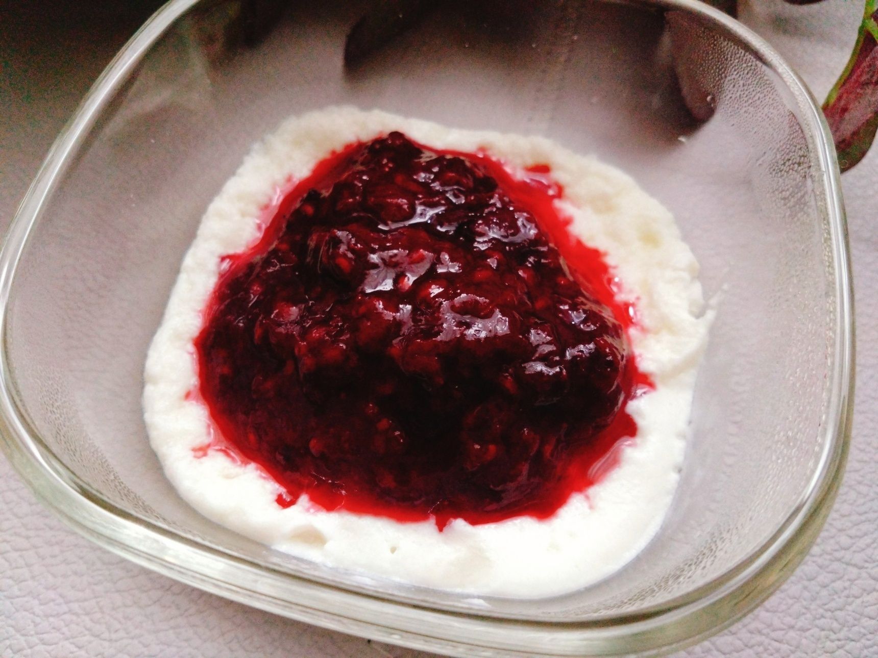 3.耐熱容器にBを入れて混ぜたら600Wのレンジで1分半加熱。果肉を潰したら冷やす。