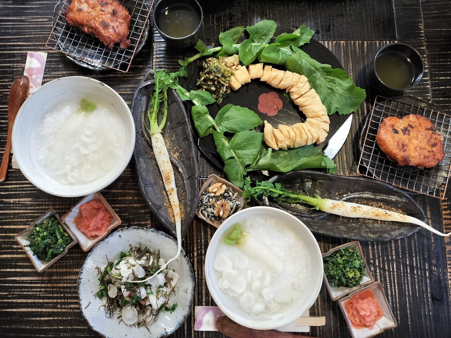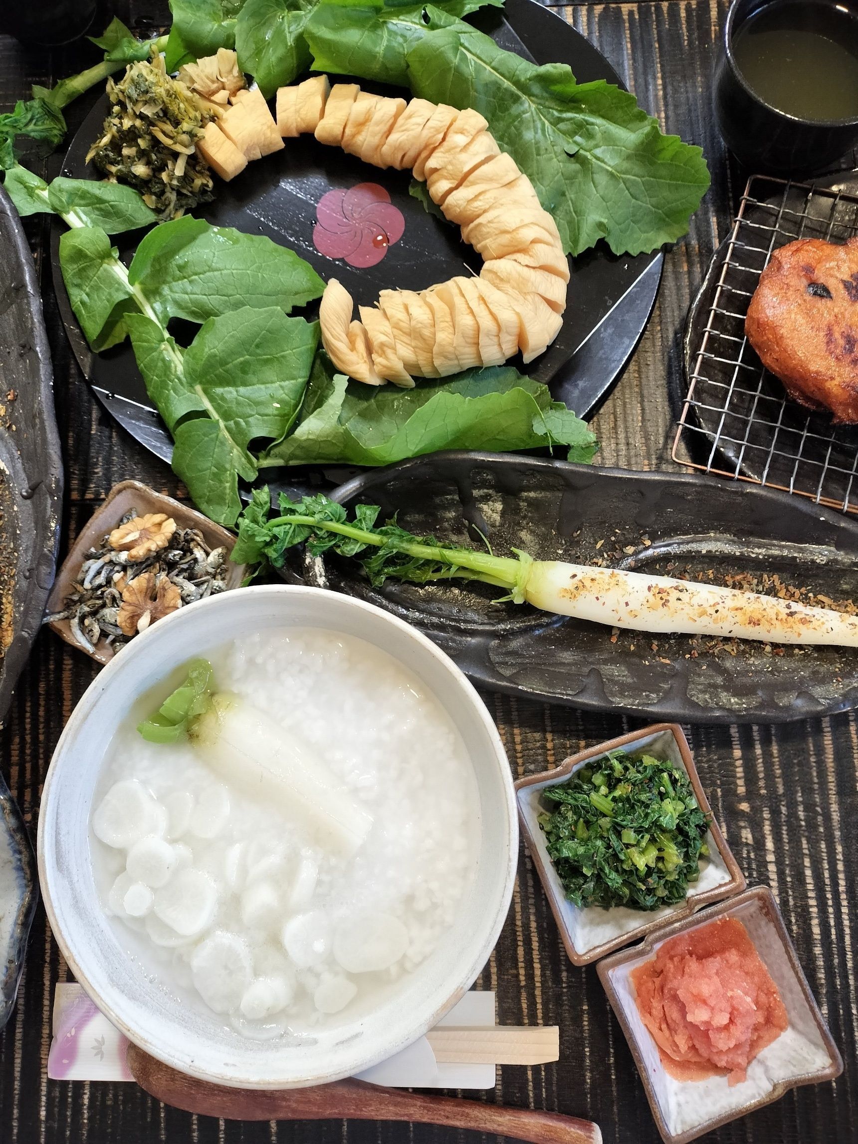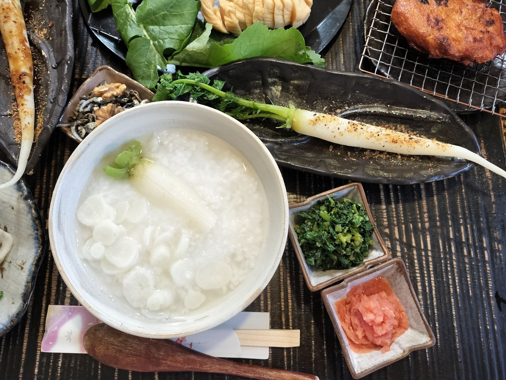 ※熱々のお粥に、手順4と5の具材を加えて、いただきまーす!【コク旨粥完成】