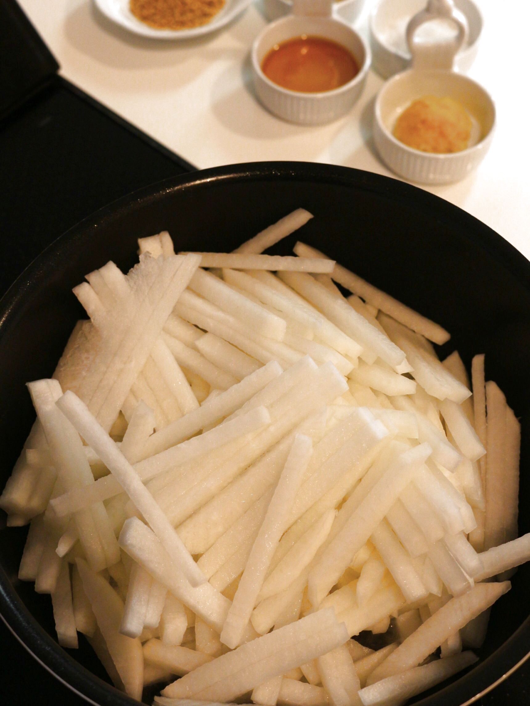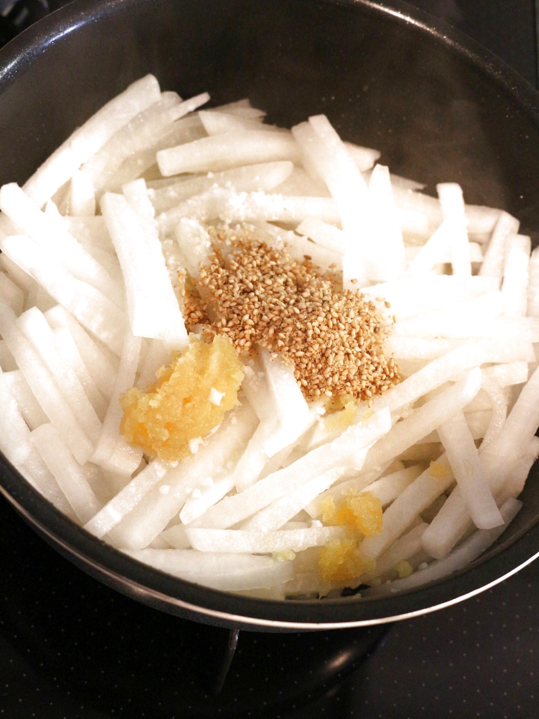 ②サラダ油を回し入れたフライパンで大根を中火で3分炒める。