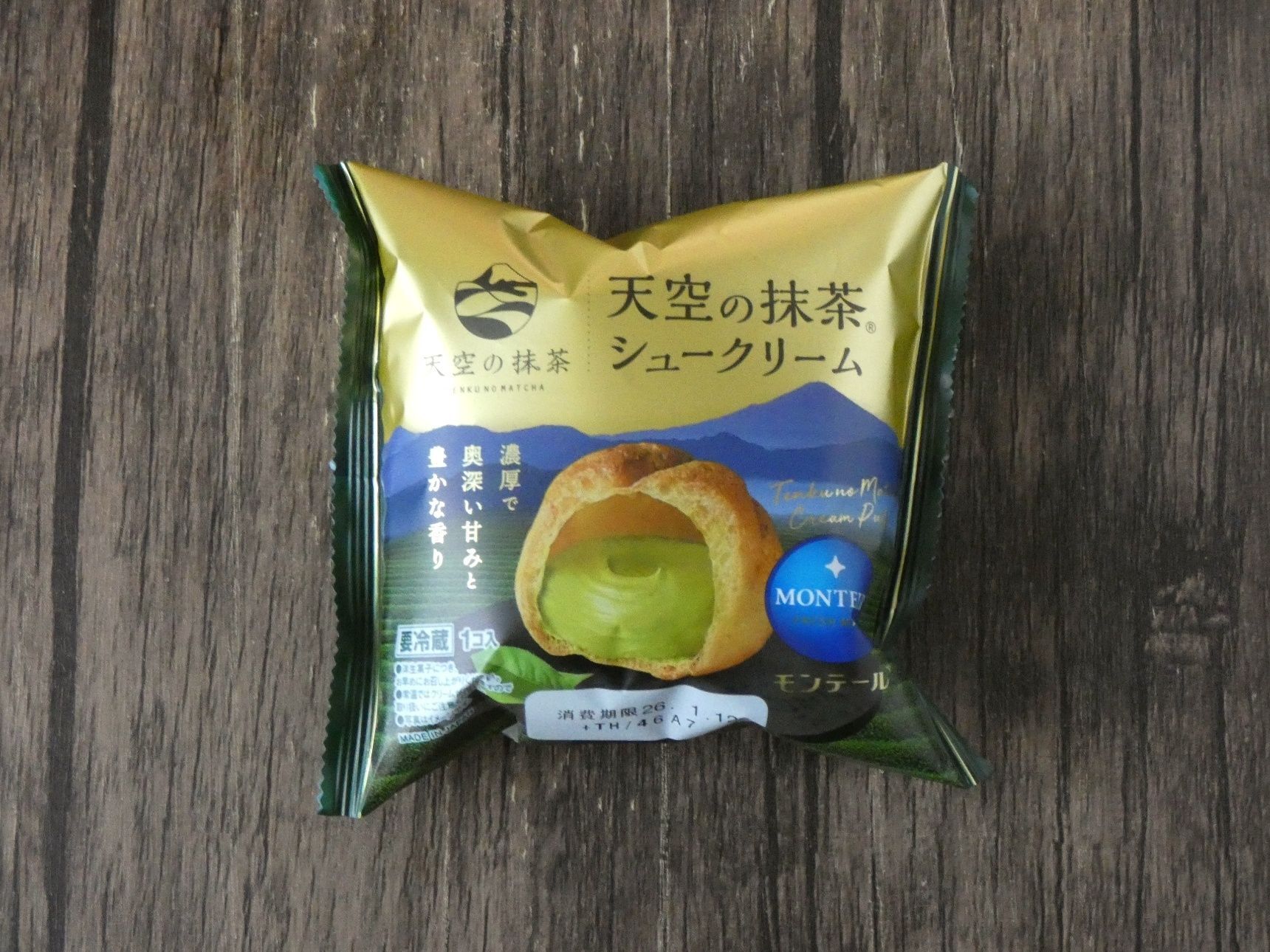 「天空の抹茶 シュークリーム」は静岡県産の天空の抹茶をたっぷり使ったスイーツ。