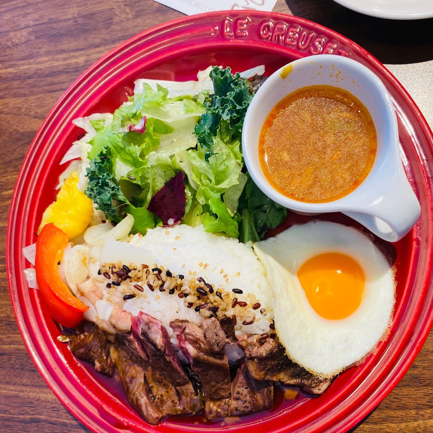 セットにするととってもお得なので、牛ロースステーキロコモコセットを注文。
