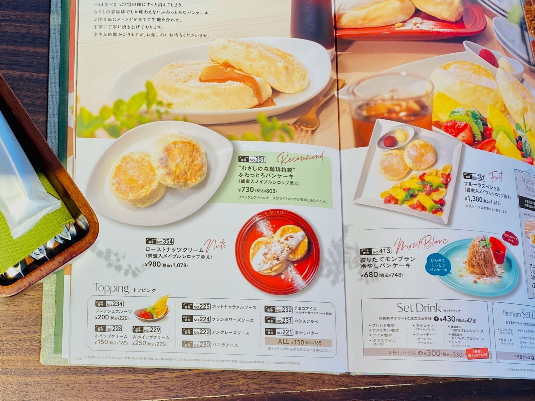 向かって右側が絞りたてモンブラン冷やしパンケーキ220円
