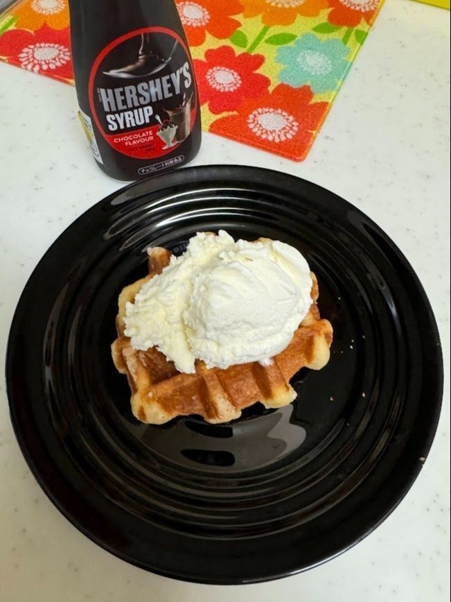 業務スーパーでは冷凍食品が安く手に入ります。その中でもベルギーワッフルは特に美味しくて、いつも購入します。冷凍庫から出して自然解凍するだけで食べられますが、アレンジして食べるともっと美味しいです。