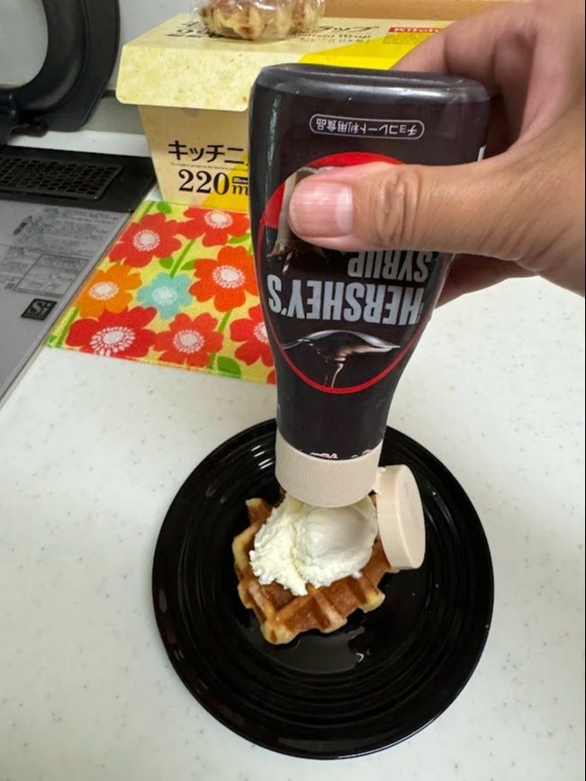 その上にハーシーチョコソースをかけます。