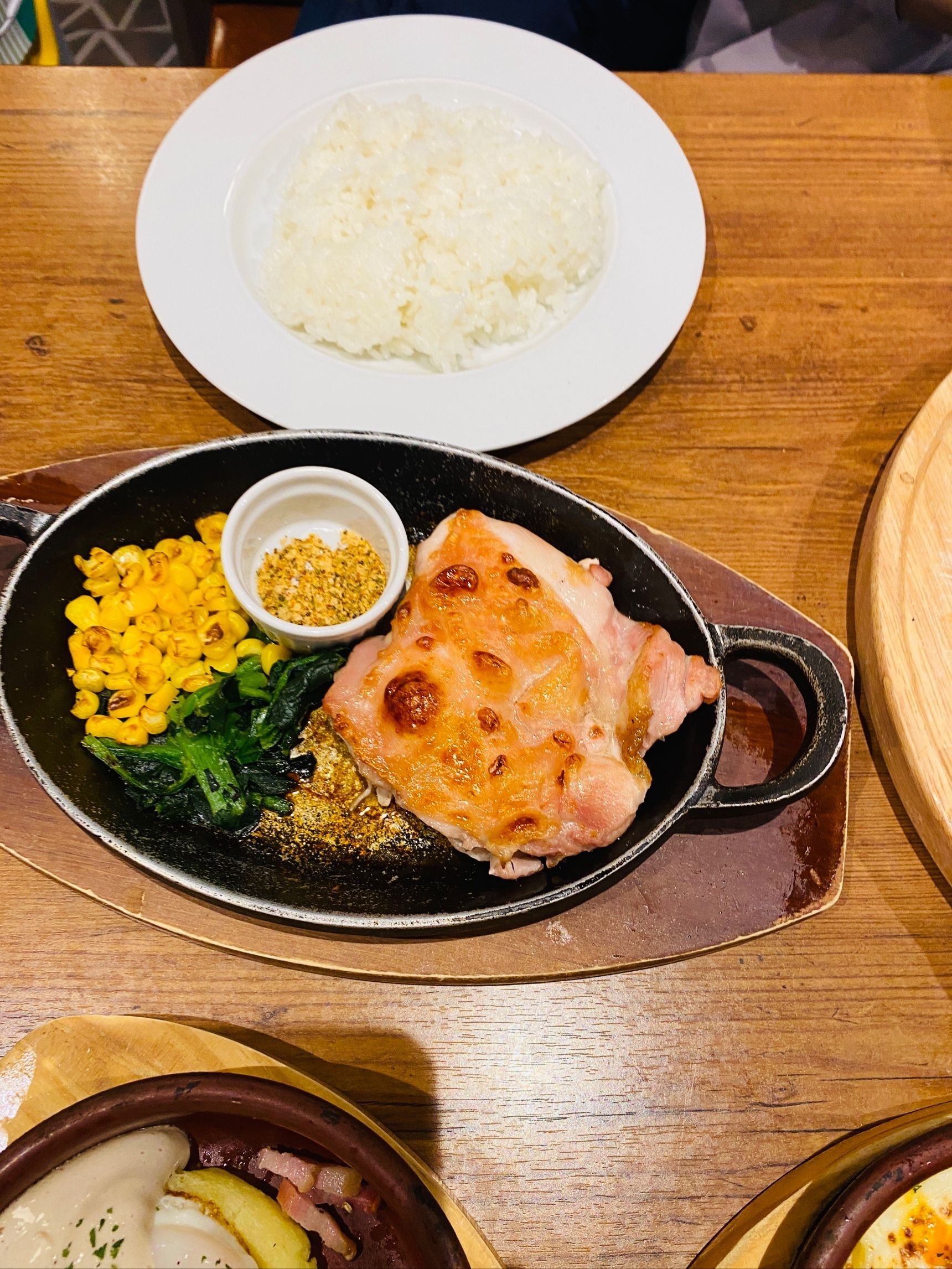 鶏もも肉をオーブンでカラッと焼き上げたチキンステーキです。