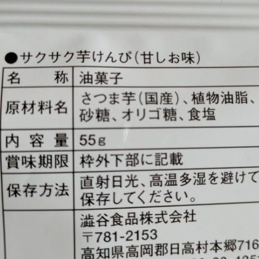 原材料:さつま芋、植物油脂、砂糖、オリゴ糖、食塩
