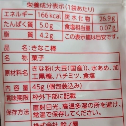 原材料:きな粉、水あめ、加工黒糖、ハチミツ、食塩