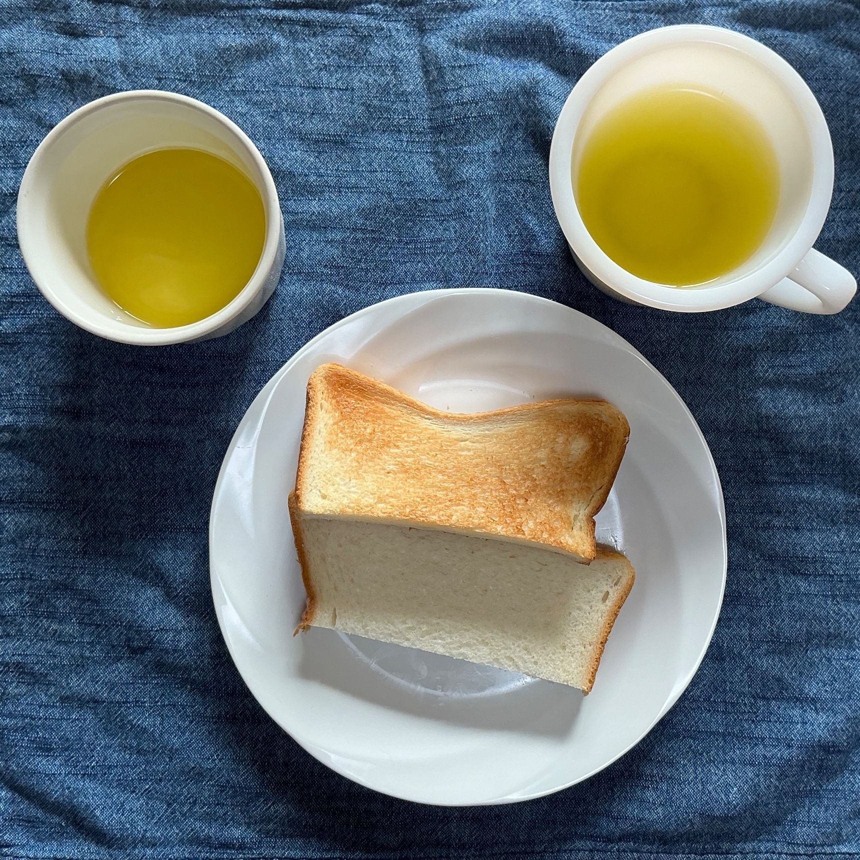 *補足として、向かって左がオリーブオイル、右が煎茶である。色味はそっくりで映えないかもしれないが、さっぱりしたかったのであえてこの組み合わせを選んだ。パッケージは手元にはもうないが、静岡県の有機お茶農家の樽井さんの茶葉で淹れている。日本各地の有機農法のお茶を、少しずつ試しているところだ。