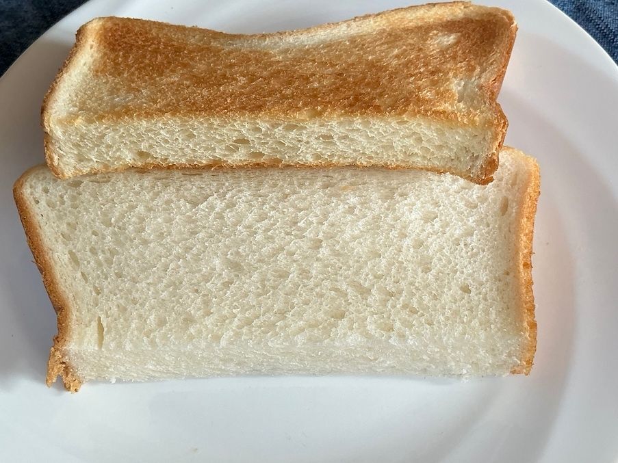 プレーンな状態を見ると、表面には自然なおうとつがあり、ほどよいきめ細かさであることがわかるだろう。しっとり・ふんわり・もっちりがバランスよく共存していると私は思う。