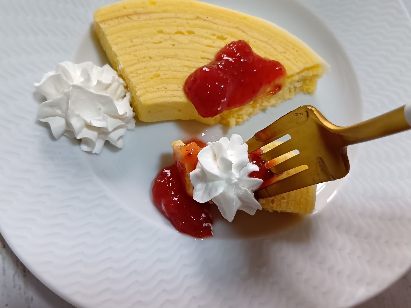 きめ細やかでしっとりした生地に、外側の甘いコーティングが絶妙で、シンプルなのに思わず「これこれ…」と声が出る、ほっとする味わいです。無添加ジャムとホイップクリーム追加のアレンジでいつもとはまた違う美味しさも味わえ、最高のティータイムになりましたっ!