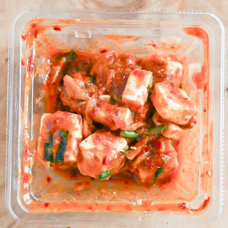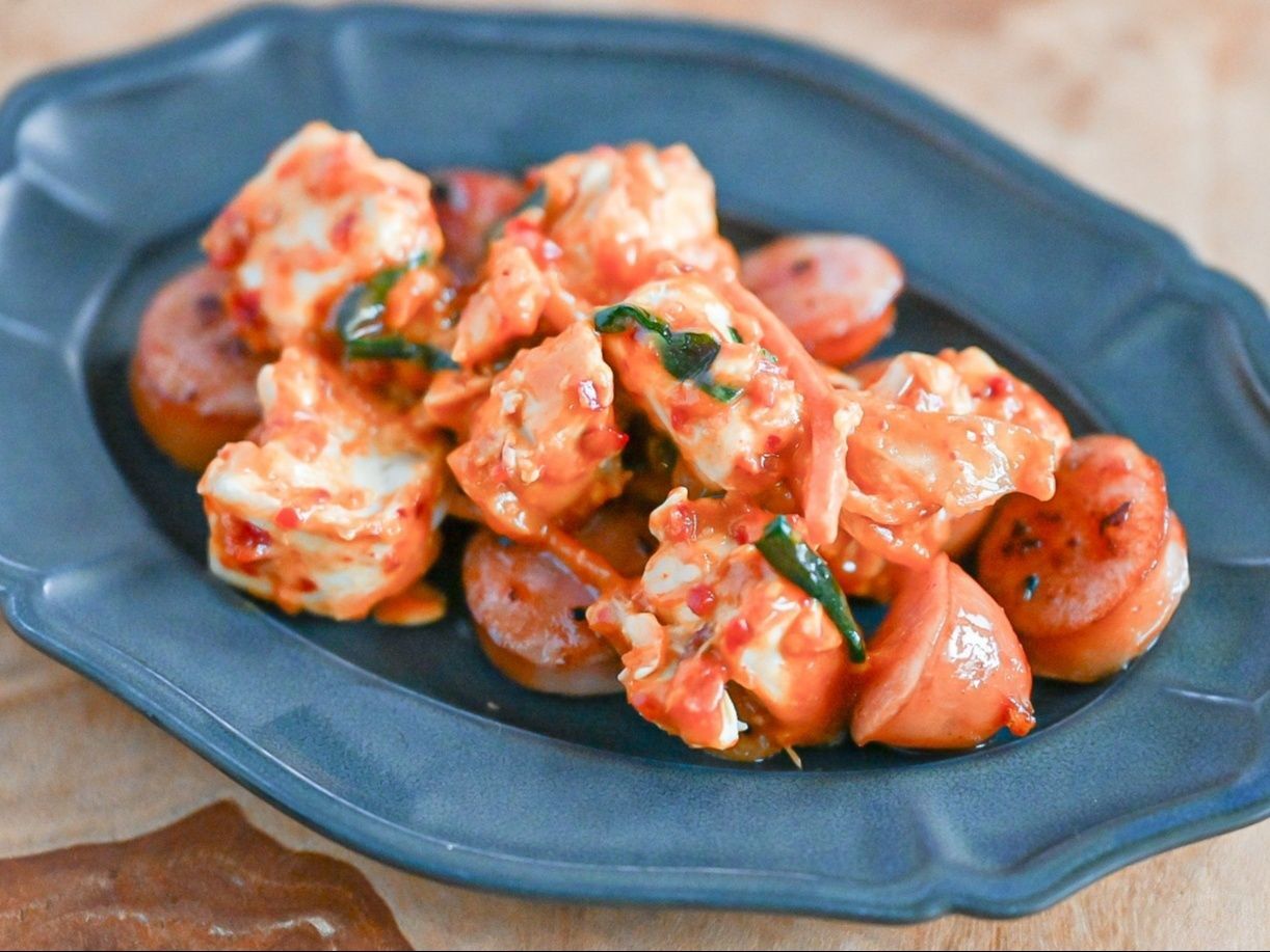 キムチとなめらかなクリームチーズの組み合わせは、あとを引くおいしさでお酒のおつまみにもぴったりです。