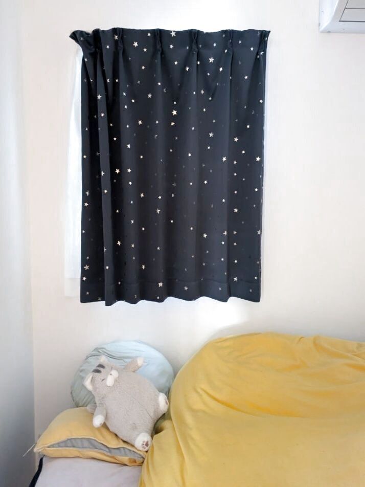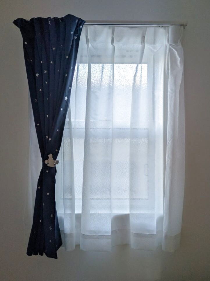 三男くんもとても気に入ってくれました。カーテン留め具もセリアに種類豊富にあったので、部屋のイメチェンにもおすすめですよ。
