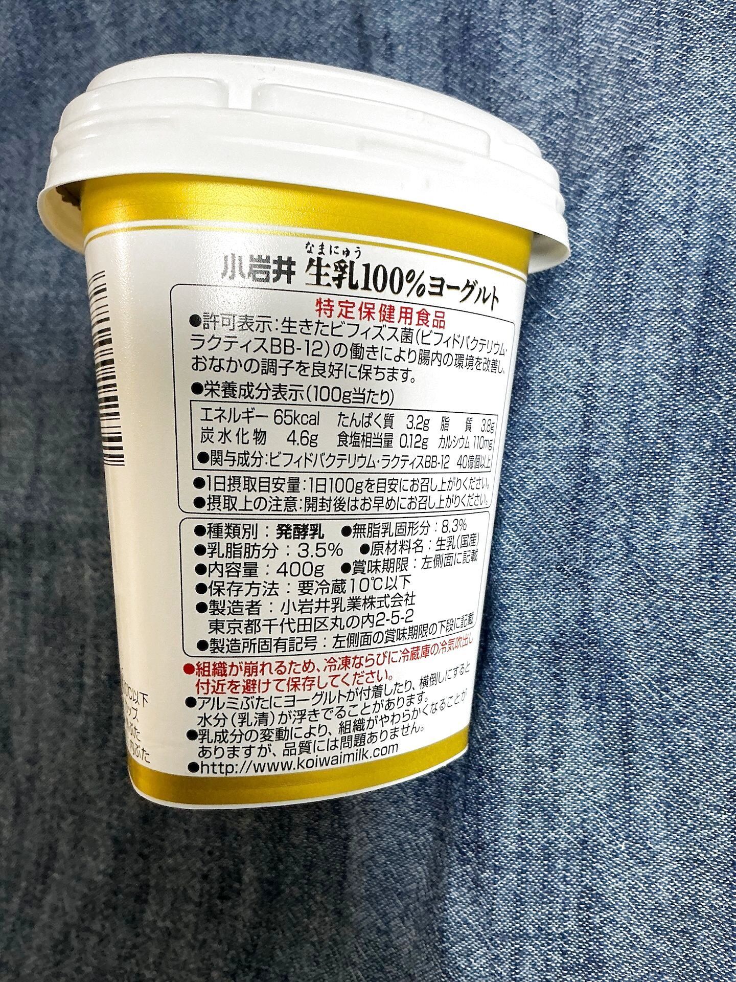 ヨーグルトは「小岩井 生乳100%」(小岩井乳業株式会社)。こちらも無添加である。