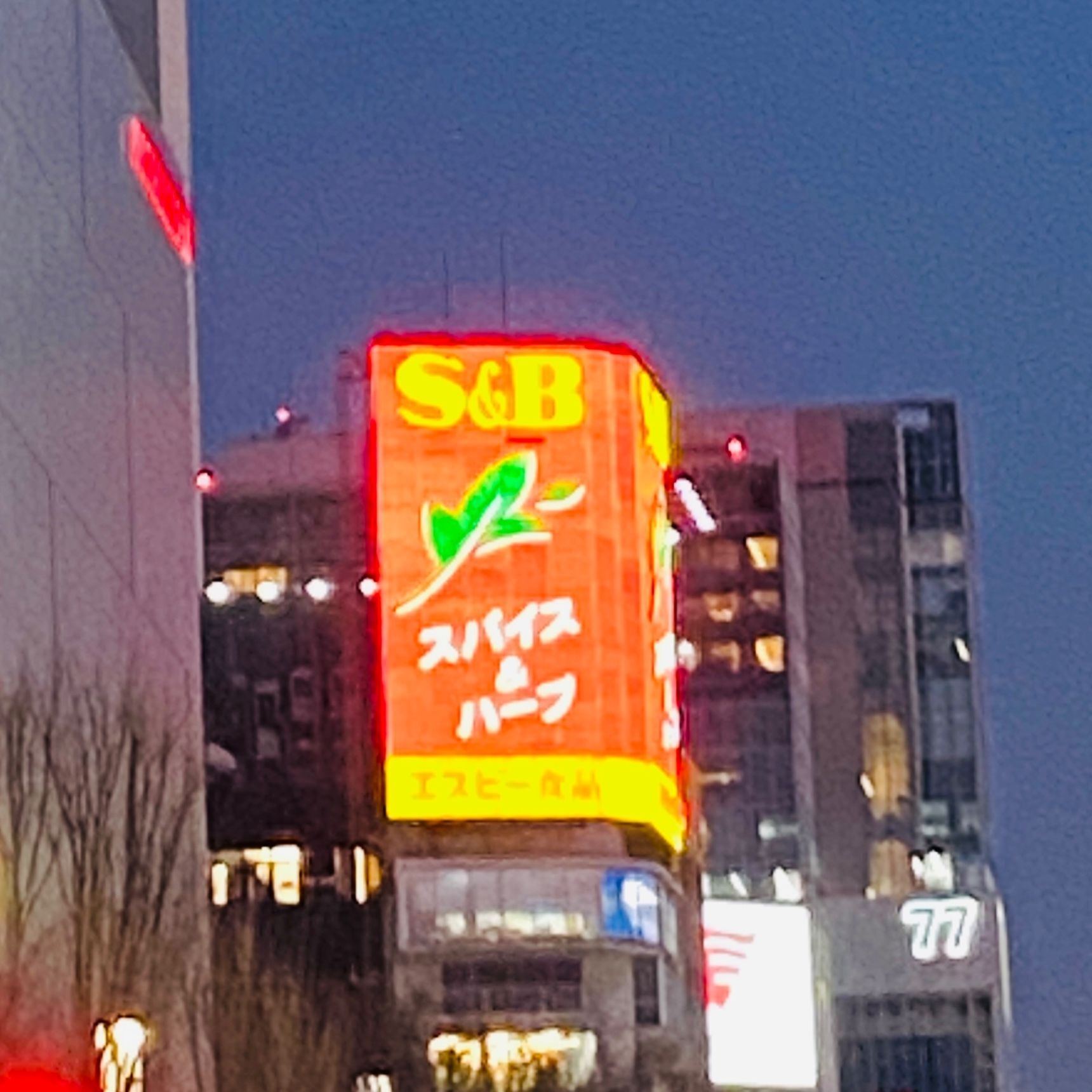 使わない日はない!スパイスやカレールーなどでお馴染みの「S&B 」の看板!デカっ!目立ちますね。思わずパチリ!