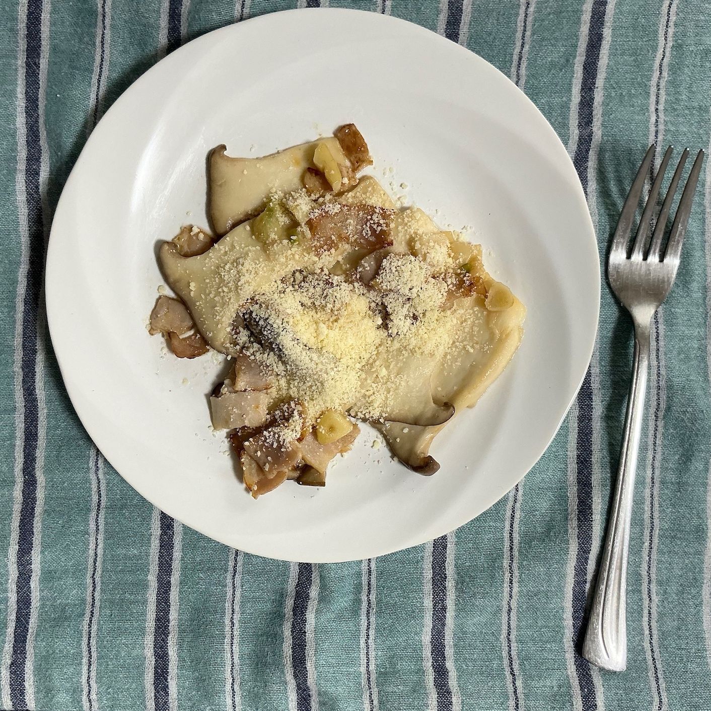 半分ほどいただいたら、今度は粉チーズをトッピングして食べてみる。