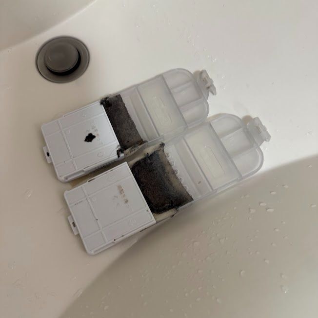 ゴミが溜まったらフィルターを外し、そのまま破棄して新しいものと交換します。たくさんたまる冬の糸くずも簡単に除去出来ます。フィルターを毎回ゴシゴシ洗う手間が省けるのでとても便利です。