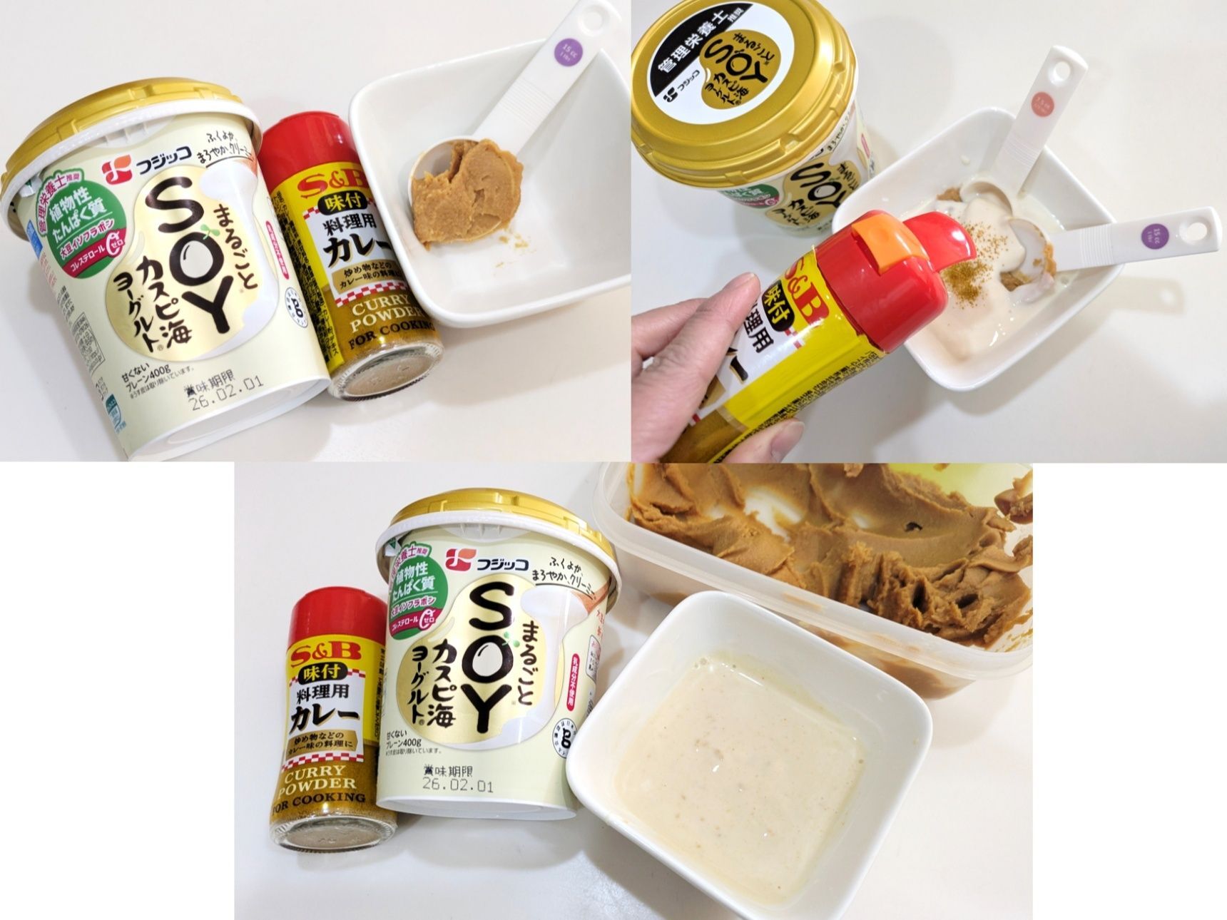 マヨネーズとまるごとSOY カスピ海ヨーグルトを1:1で混ぜます