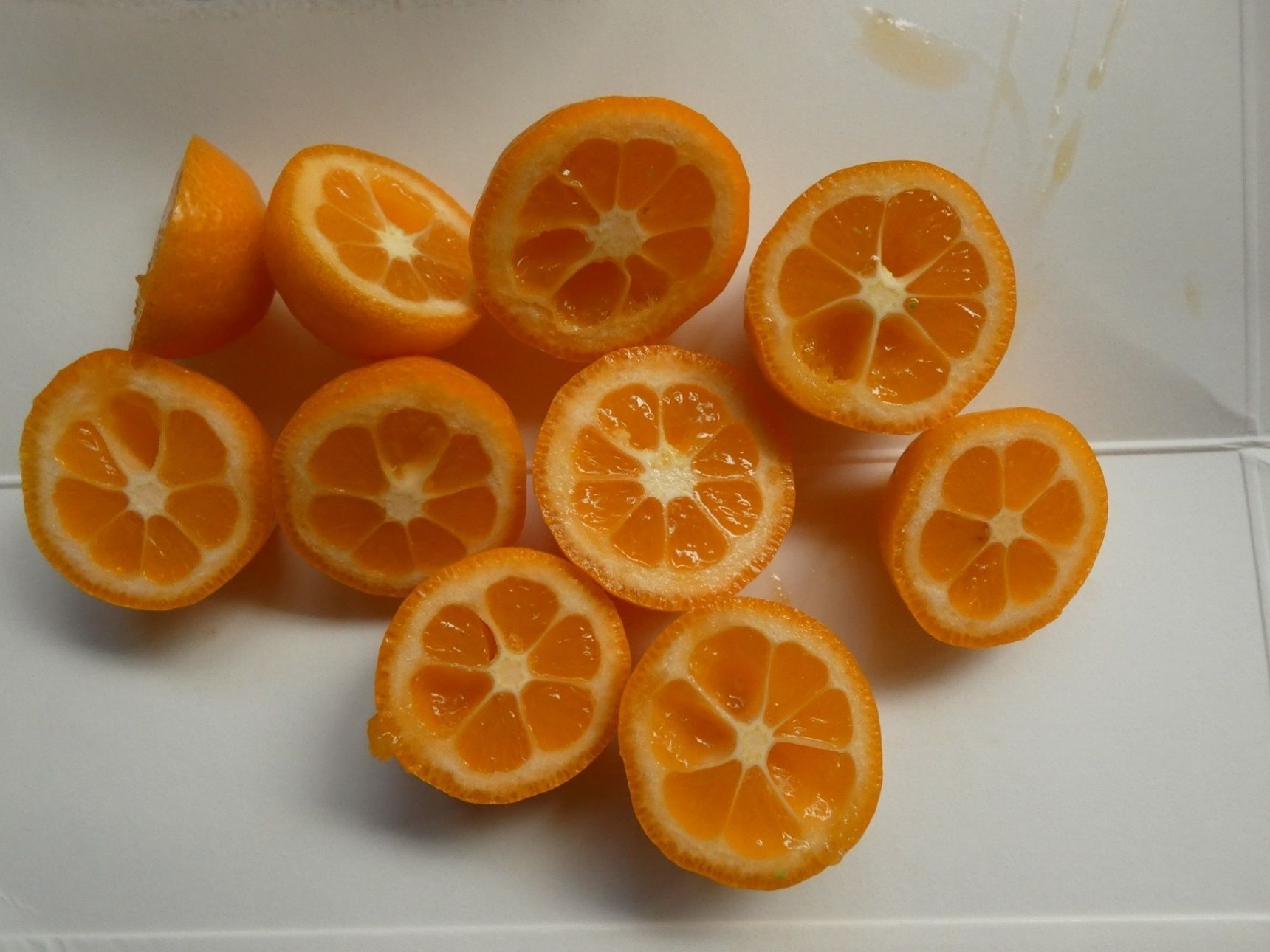 金柑は洗ってヘタを取ります。半分に切って種を取り出します。