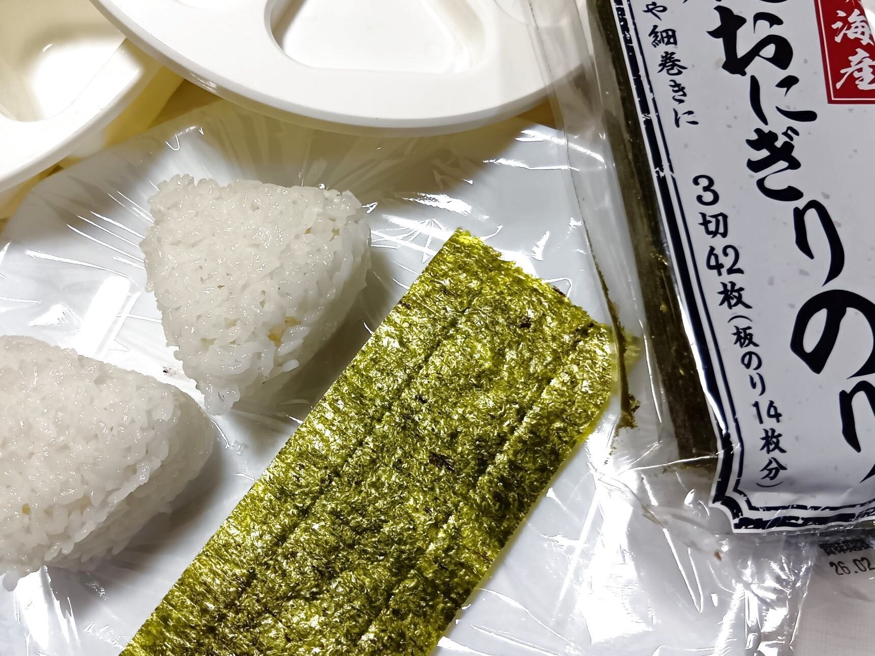 ① おにぎりを2個作り、鬼のツノに見立てます。