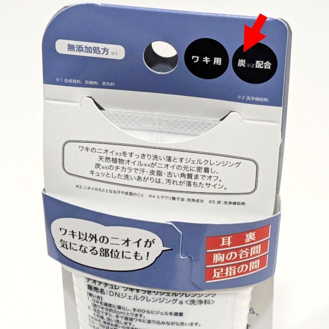 そして嬉しいことにワキ専用ではあるんですが、皮脂が気になる⇒耳うら、胸の谷間、足指の間にも使えるんです