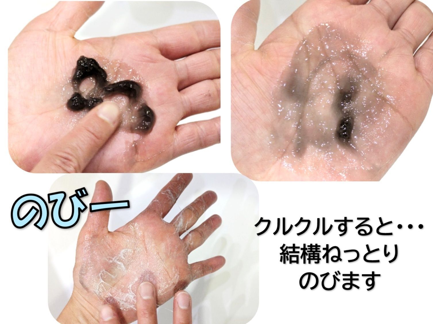 両手で手をこすり合わせてもまだのびの〜びのびながら手にまとわりつく感じ(笑)
