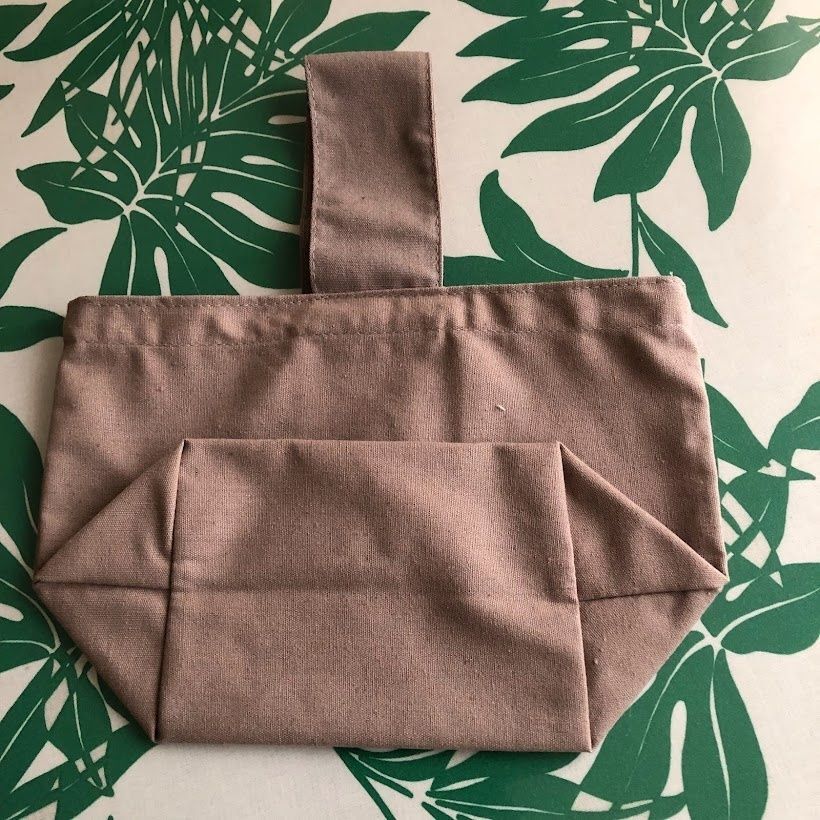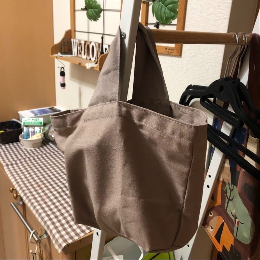 サイズは約縦19cm×横17cm×マチ12cmです。おしゃれなくすみ色を選びました。