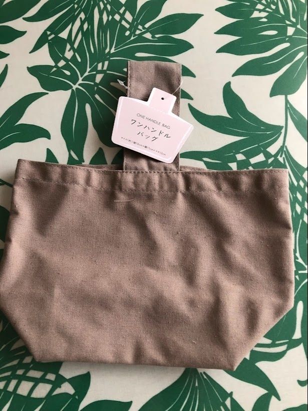 「ワンハンドル」持ち手は幅広で持ちやすく1本です。底の部分、マチがとても大きいです。布地はしっかり厚めです。