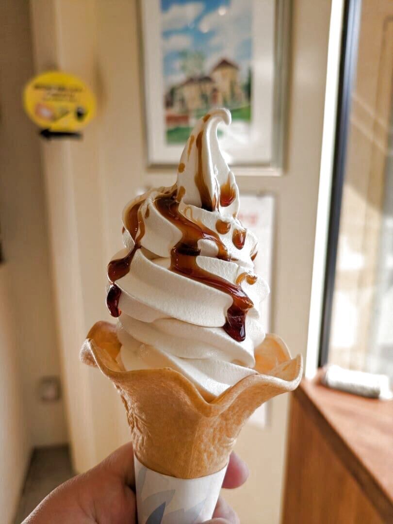 上からカラメルソースもかかっていて、絶品プリンソフトクリーム!!口どけなめらかで、家族であっという間に完食。