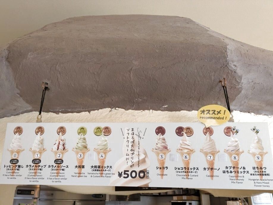 今回は、「ソフトクリームまほろば大仏プリン入り」にしました。