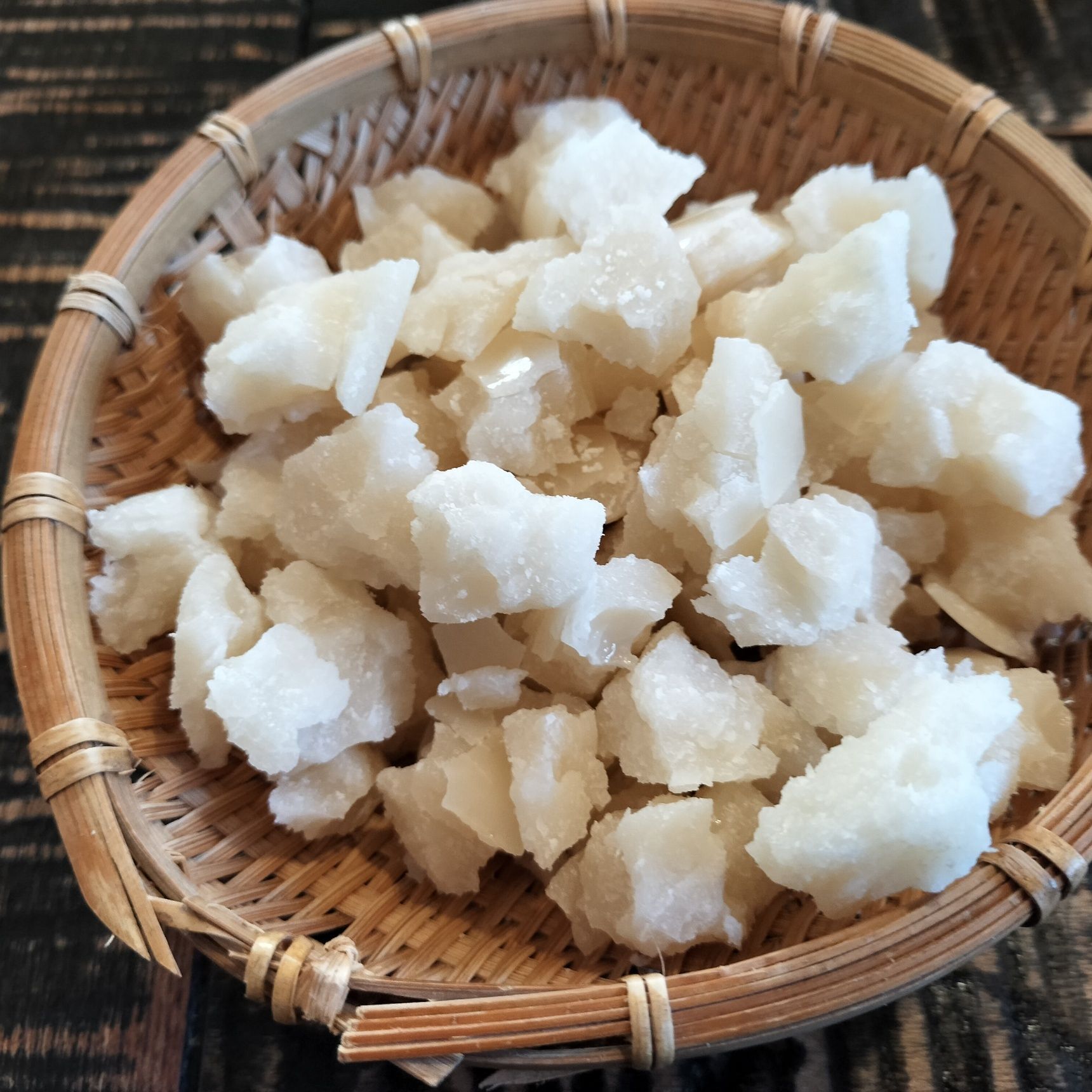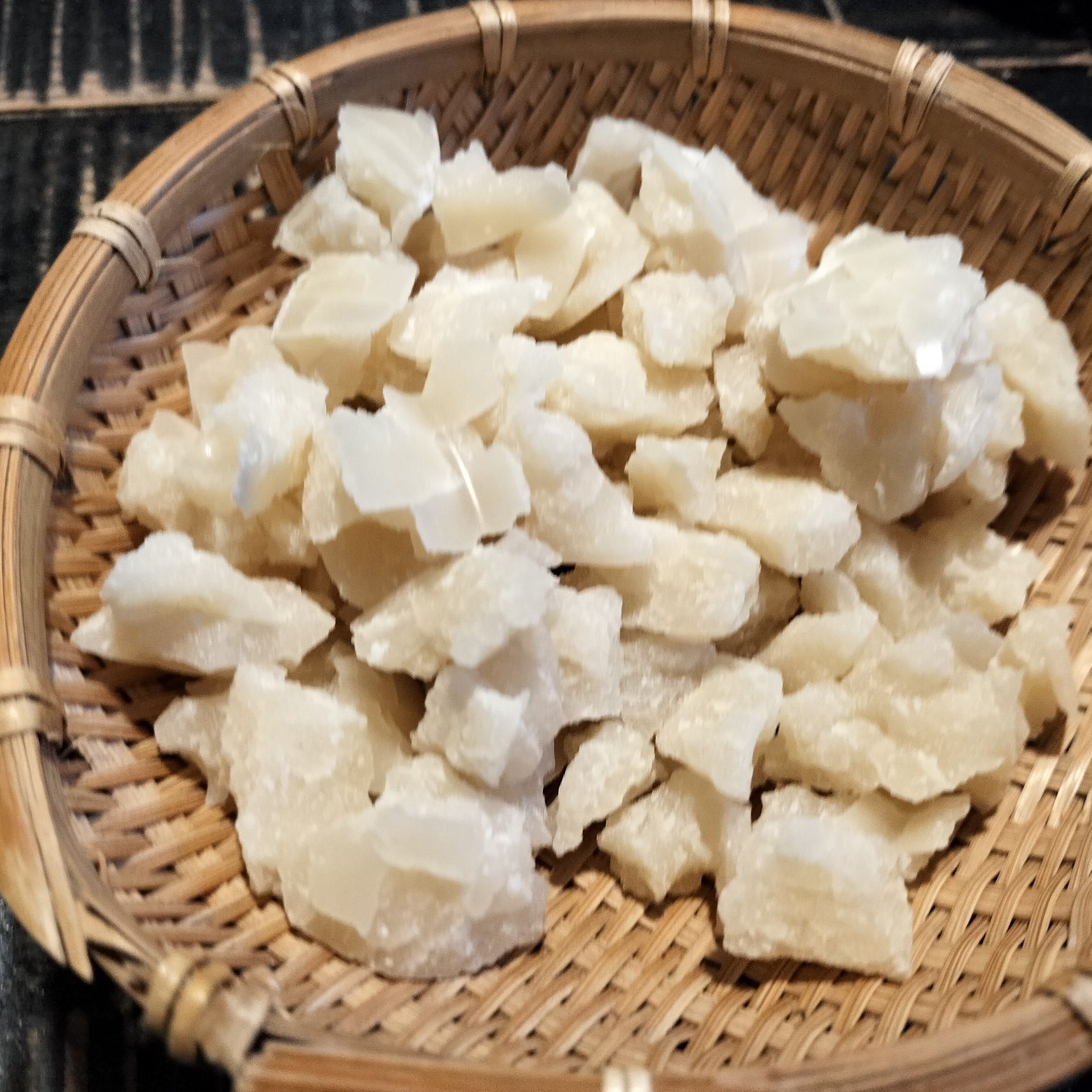 ●乾燥して中までビビが入ってくるので、手で小さく割る→再び、カゴに入れ、布等に包み、風通しのよい場所で乾燥させる