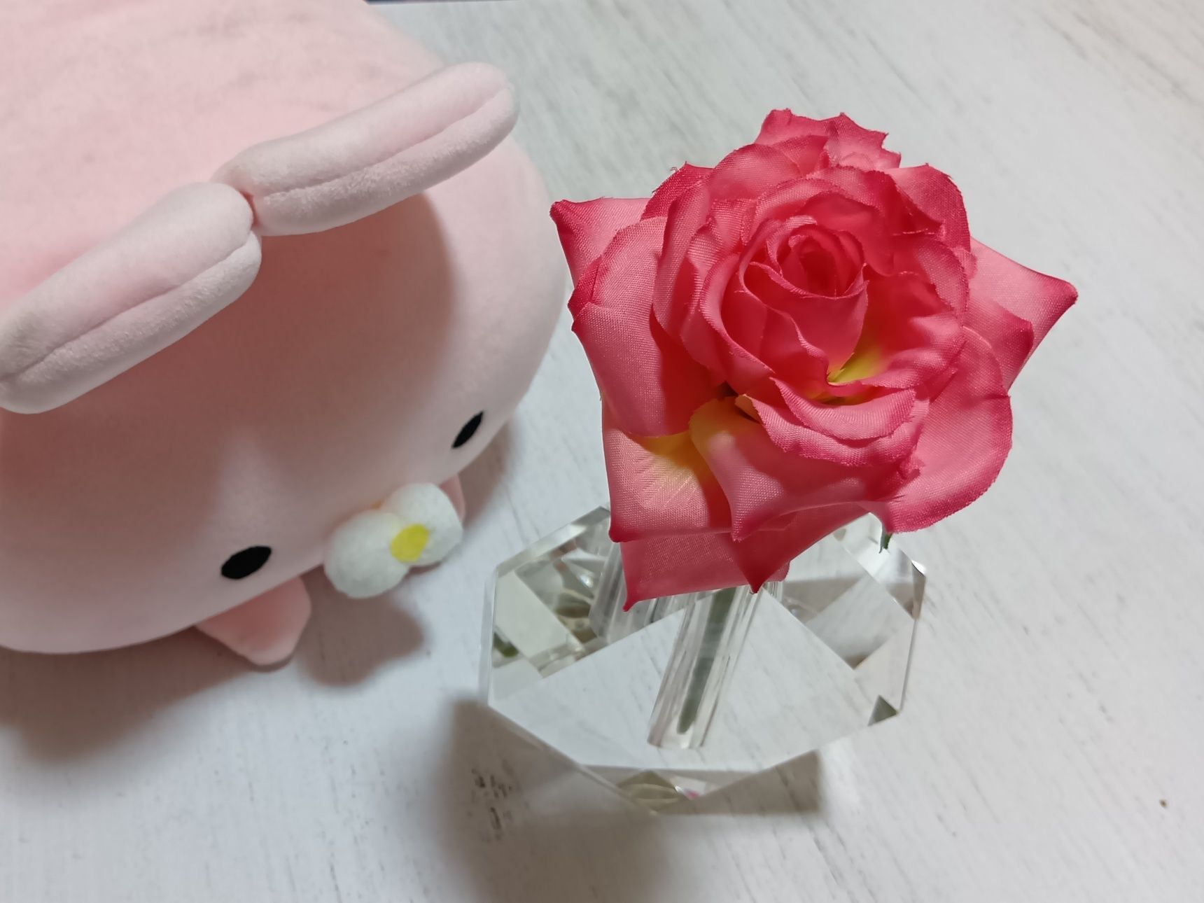 ピンクのカラーが華やかで、殺風景な場所も一輪飾るだけで、豊かな空間に!