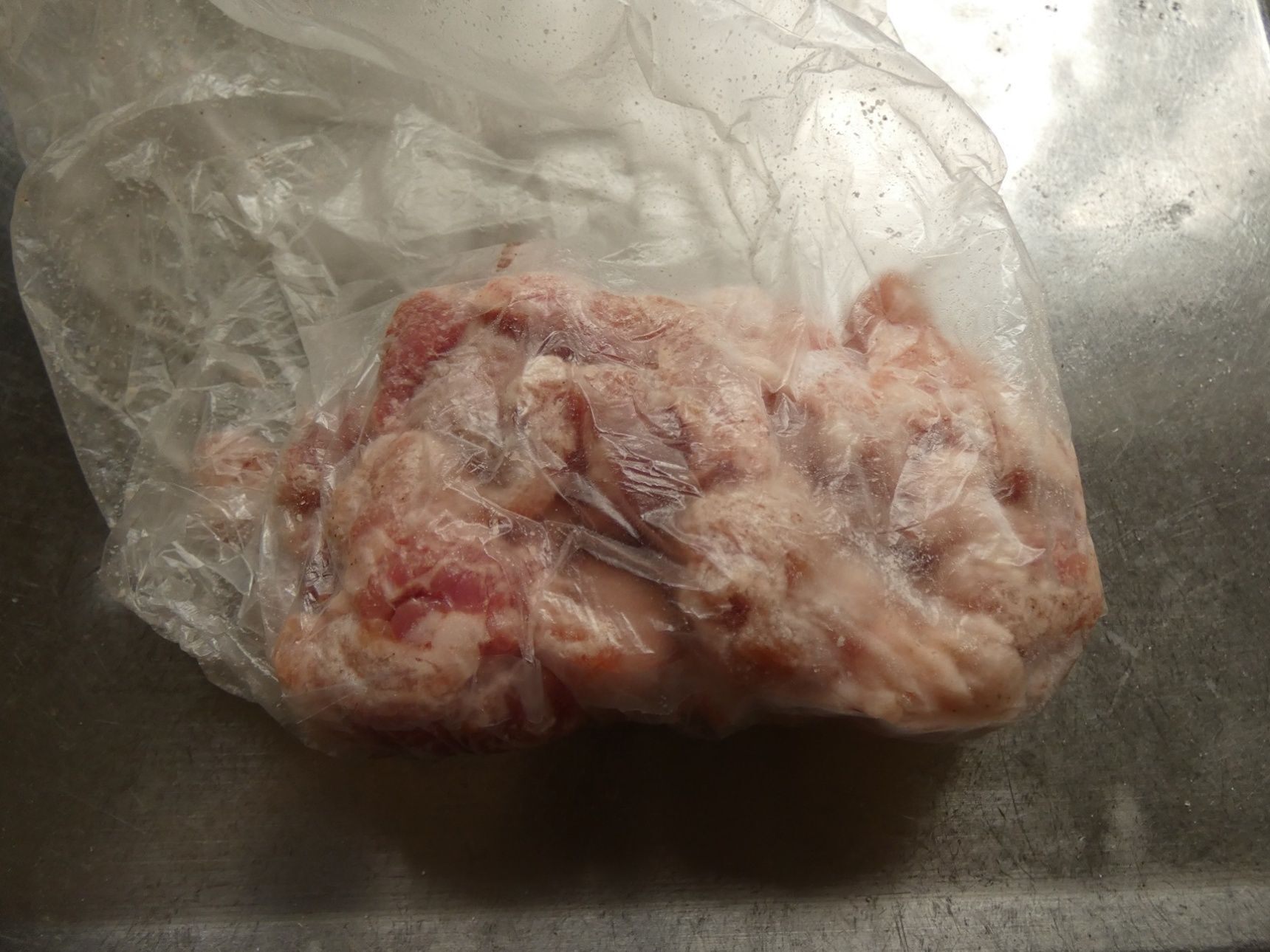 豚こま肉に塩コショウを混ぜ、米粉をまぶします。