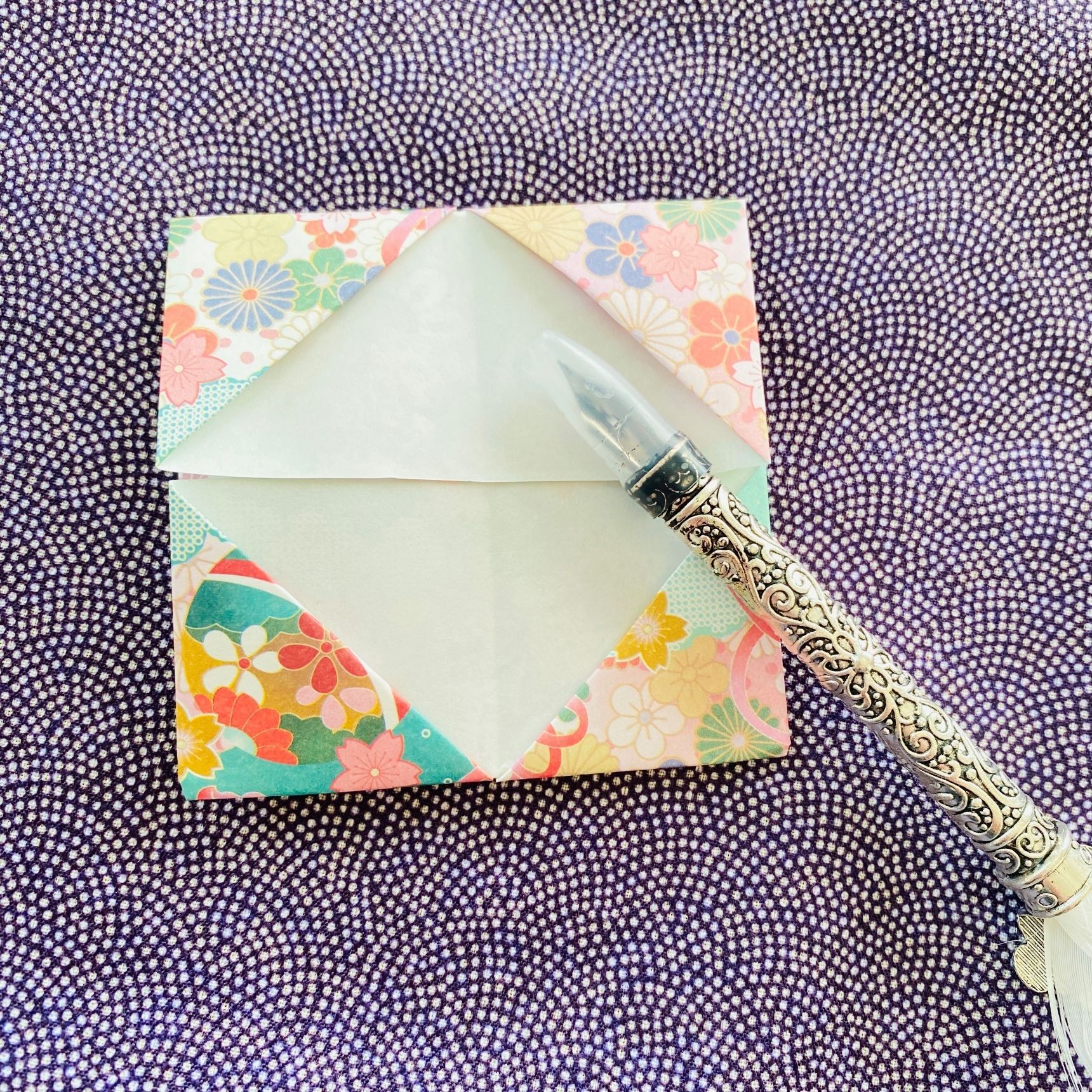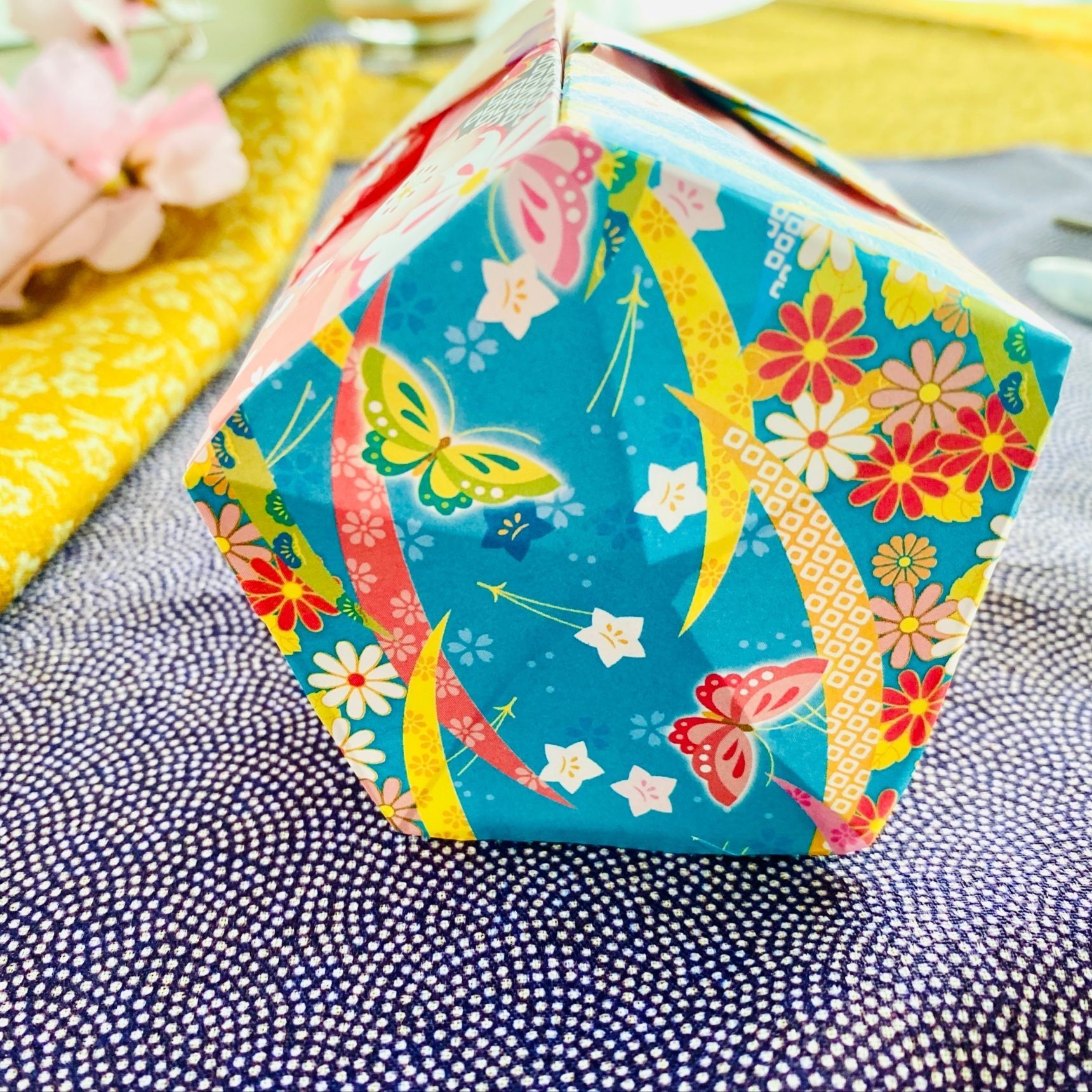 洋柄の折り紙で折っても素敵ですよ。