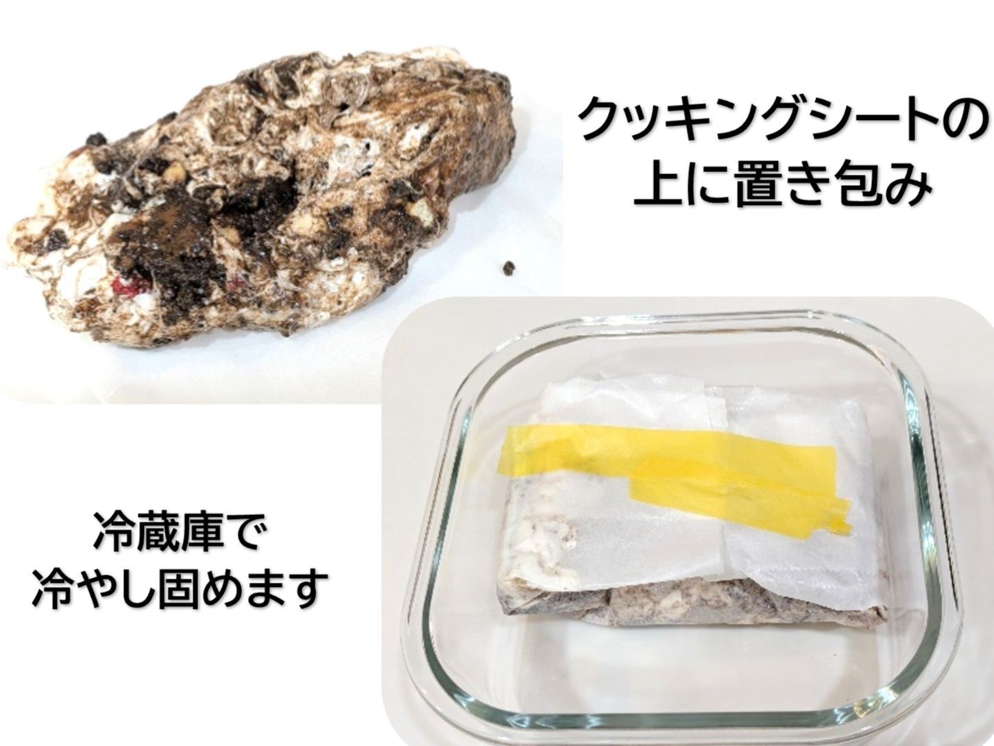 あとはクッキングシートで包み形を整え、冷蔵庫で冷やします