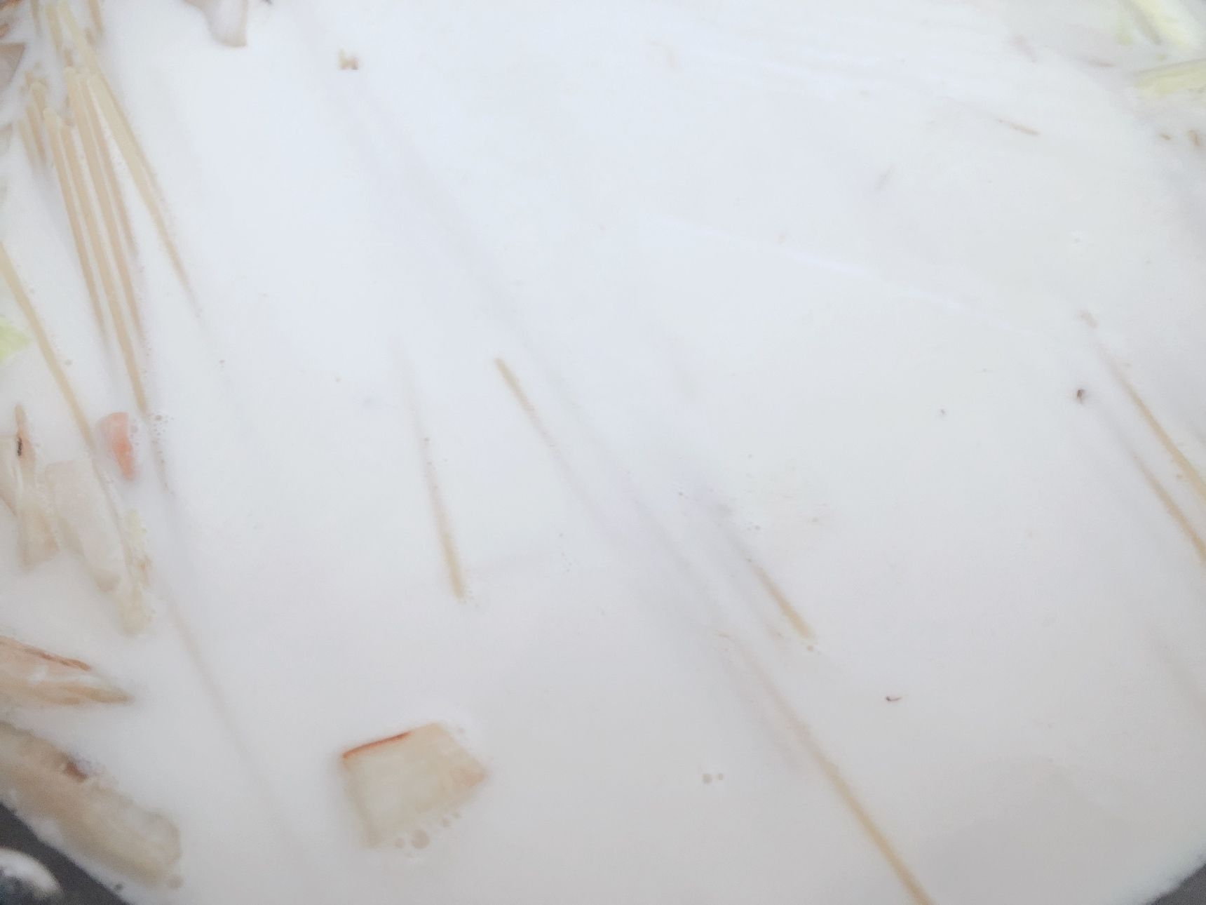 牛乳を入れたらなるべく沸騰させないように弱火でコトコト煮てください。牛乳を美味しく(*^▽^*)