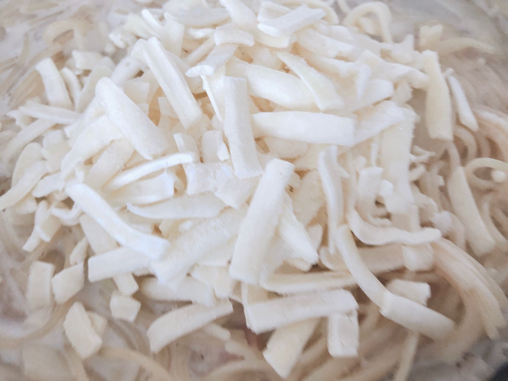 パスタが柔らかくなったらチーズをふりかけ、とろけたら完成です。最後に黒胡椒をパッパ。