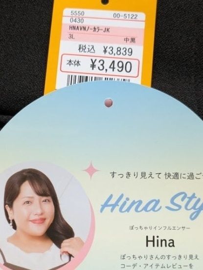 なんとぽっちゃりインフルエンサーのHinaさんが、監修されたジャケット!生地が良く伸びてとても着やすくぽっちゃりさんにはうれしいジャケットでした。