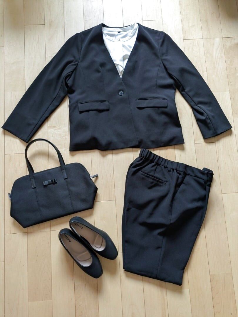 【しまむら】で購入したのが、こちらジャケット・パンツ・ブラウス2着・バッグ・パンプス6点で、お会計15,015円でした!!