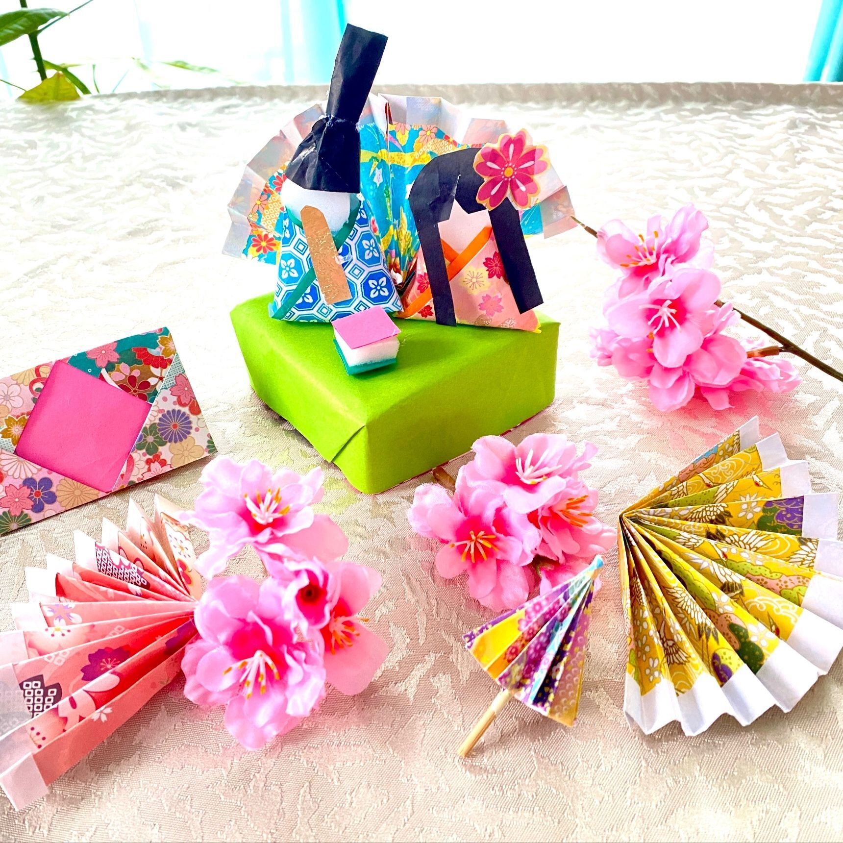土台は空き箱を利用して折り紙で貼りました。