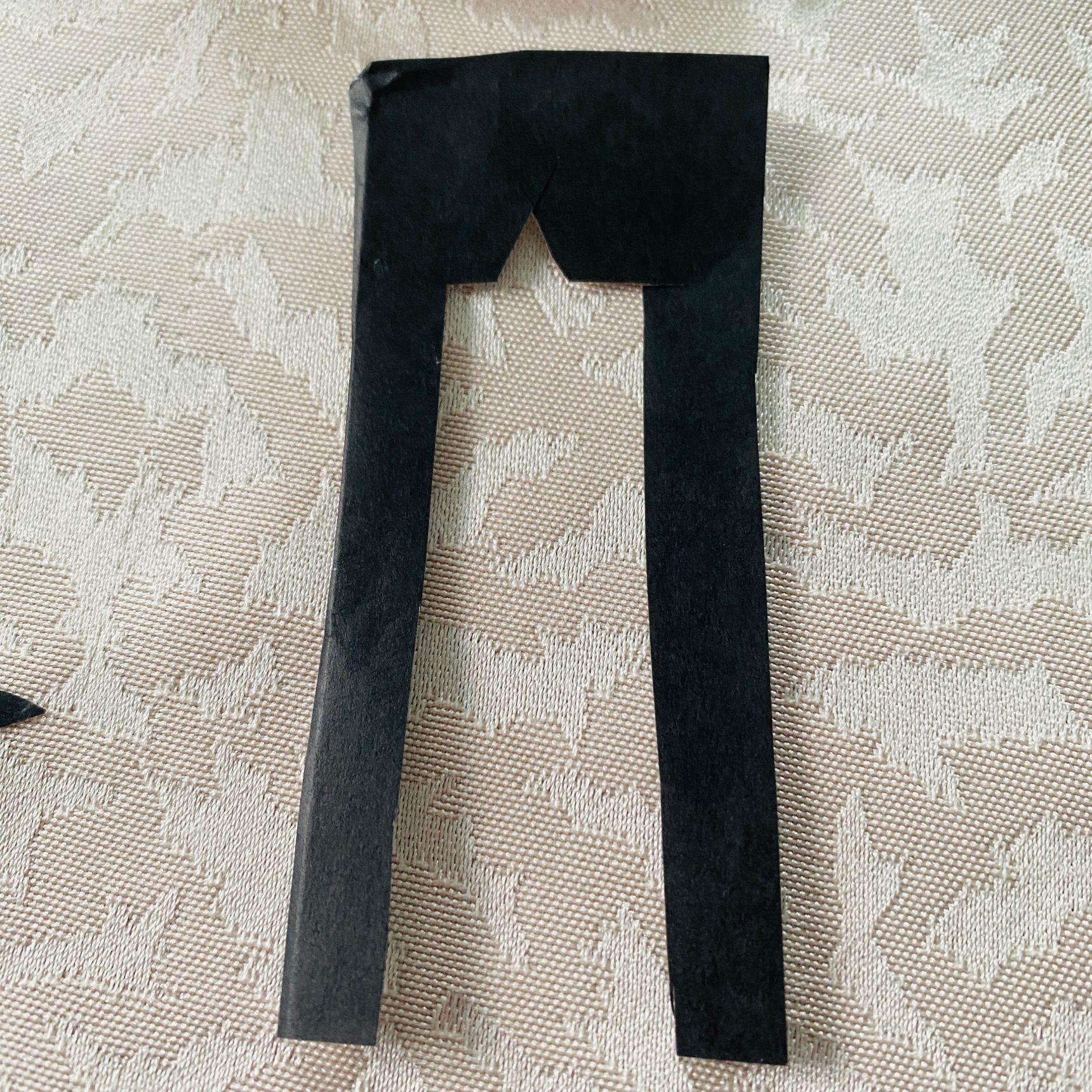 髪の毛は、黒い折り紙でこんな感じにカットして、のりなどで貼り付けた後にハサミで形を整えます。