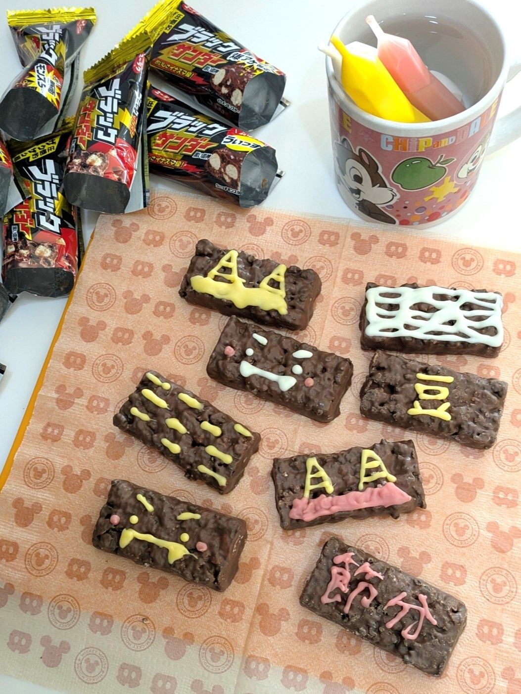 あとはブラックサンダーを並べて好きなように描くだけ。