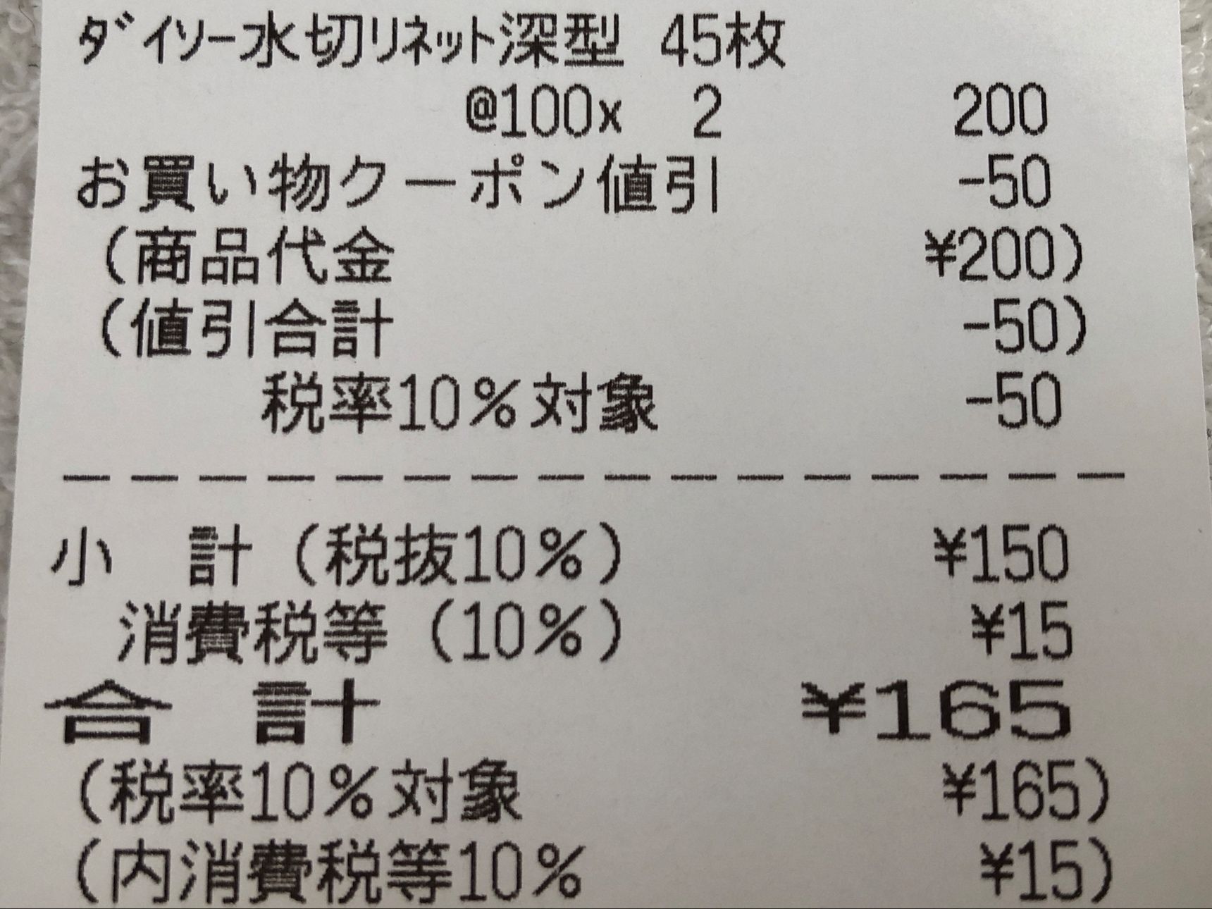 2点で165円。普段日用品はなかなか割引にならないダイソー商品がお安く買えました!