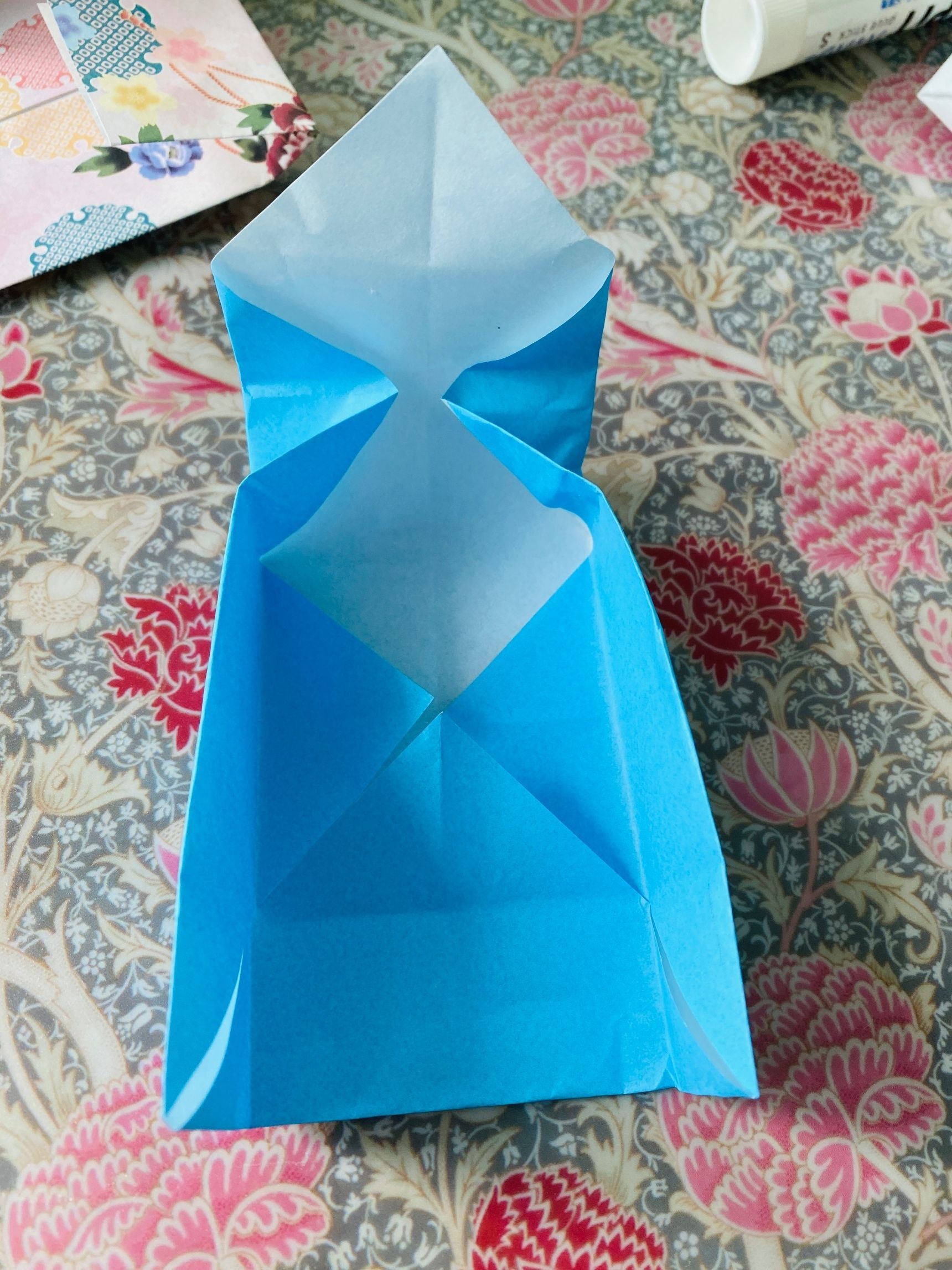 ②写真のように、両端をつまんで、上に持ち上げた三角で隠すように閉じます。