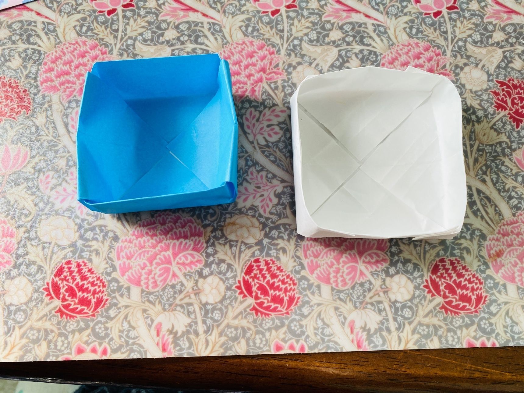 ④同じ折り紙を2枚使って、カバーの部分を作ります。