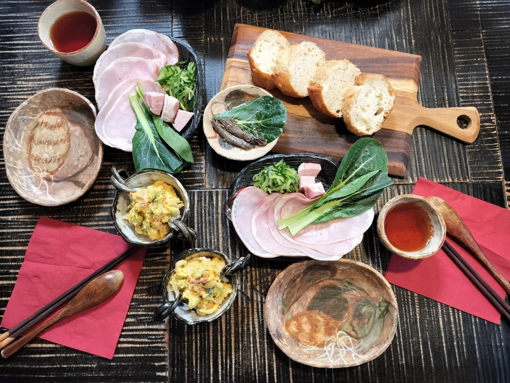 サラダと少量の熟成アンチョビを挟んで、いただきまーす!