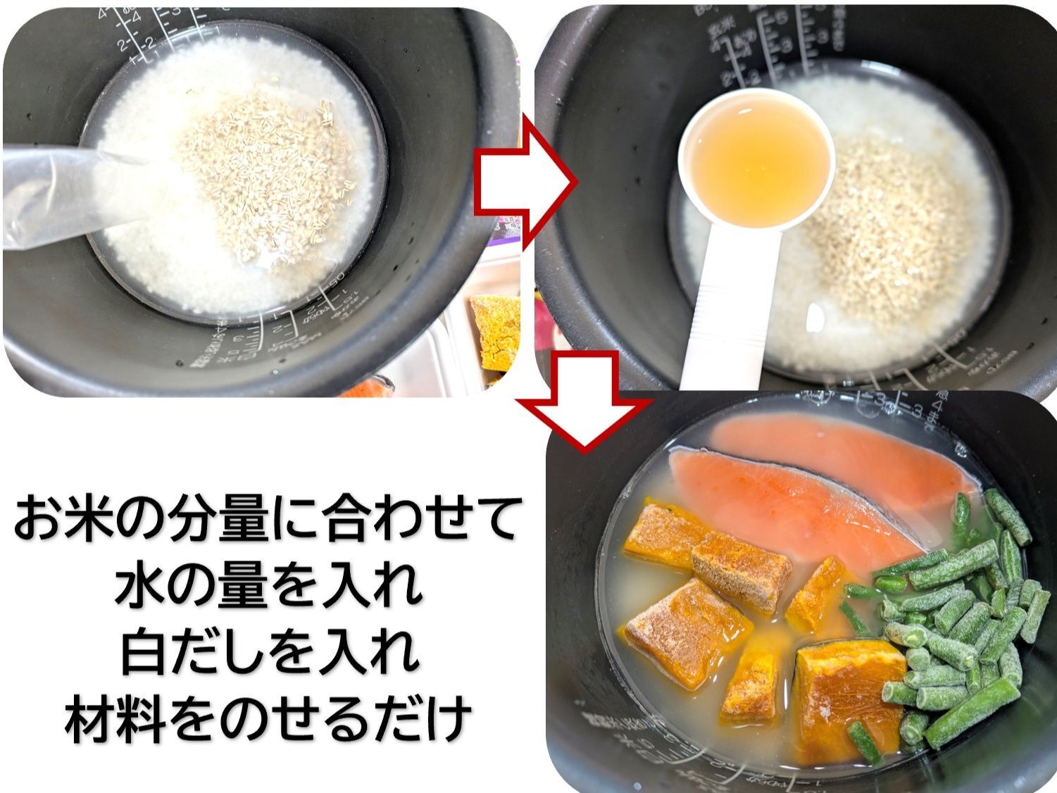 あとは同じく具材をお米の上にのせて炊くだけです。